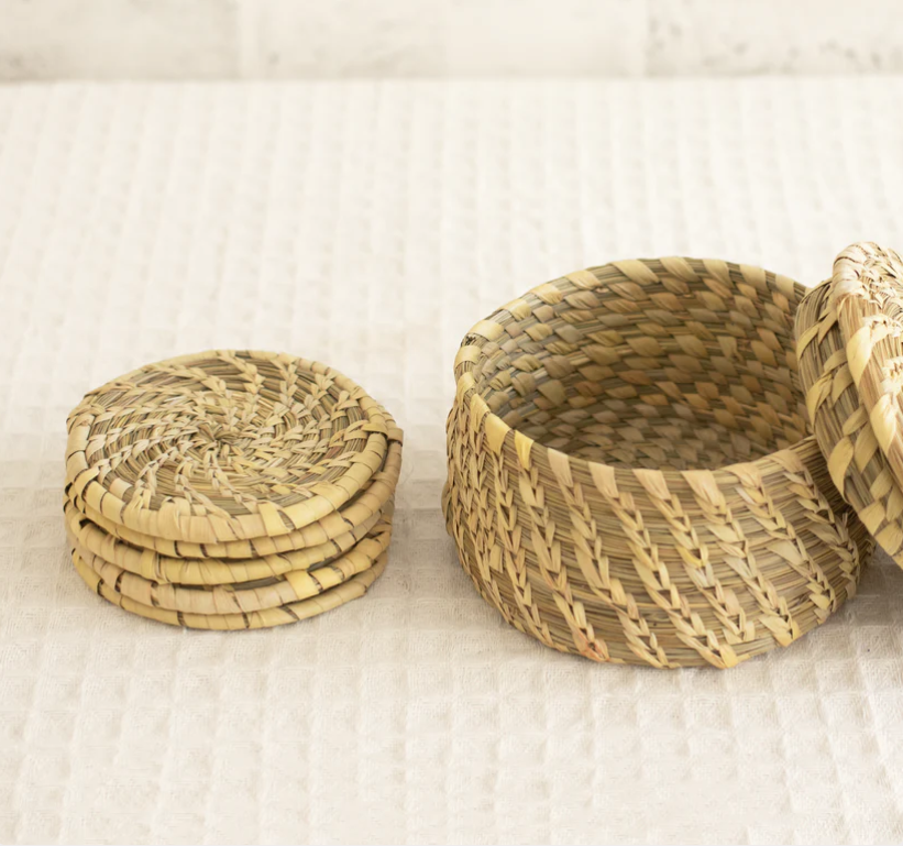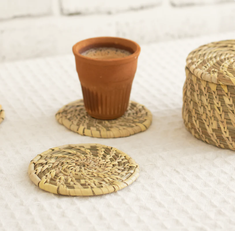 Upgrade your home decor with our luxurious Natural Kauna Grass Coasters. Made from high-quality, hand-woven grass, these coasters will add a touch of sophistication to any table setting. Protect your surfaces in style, while embracing the beauty of nature with our set of 6 coasters.