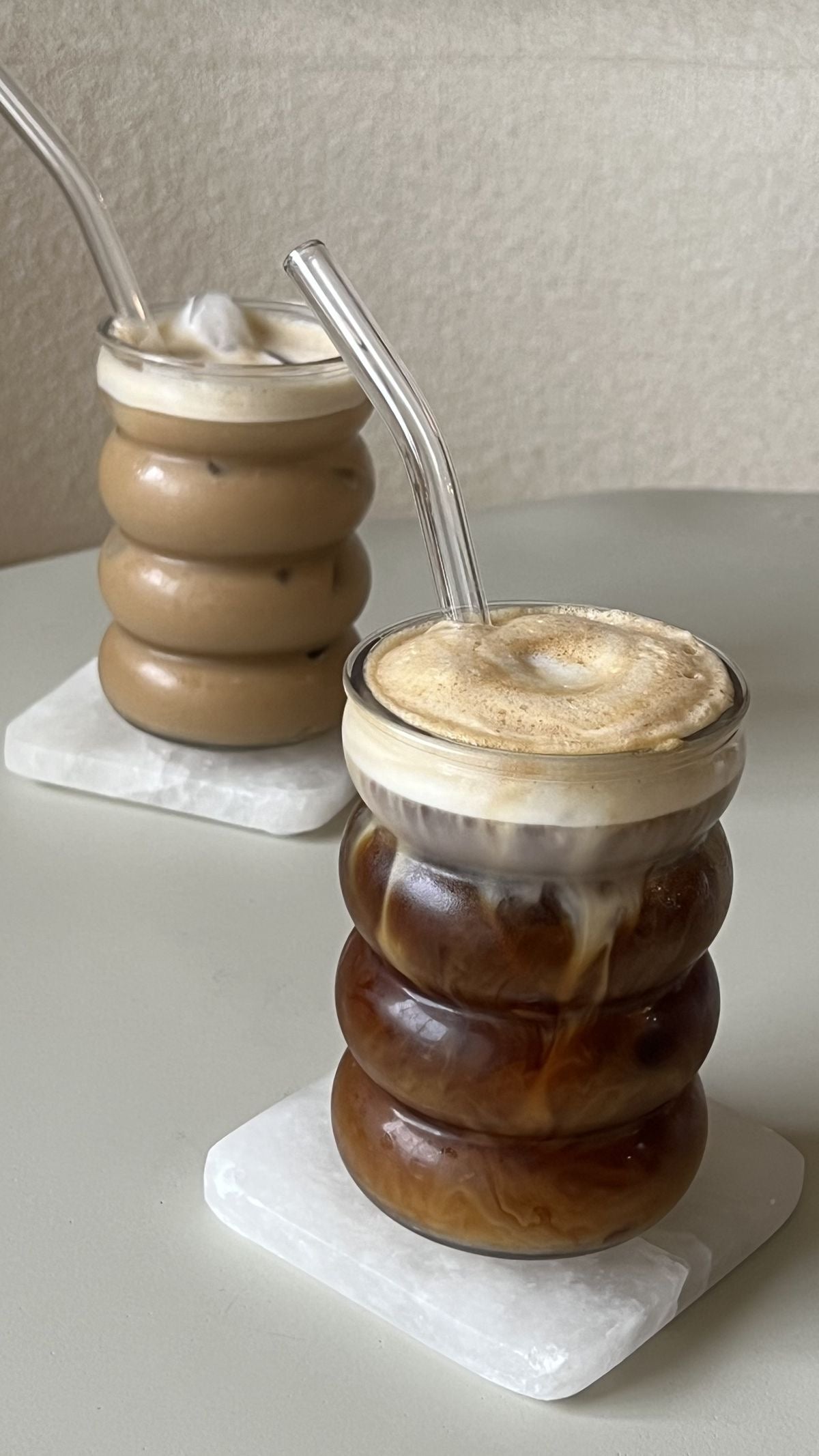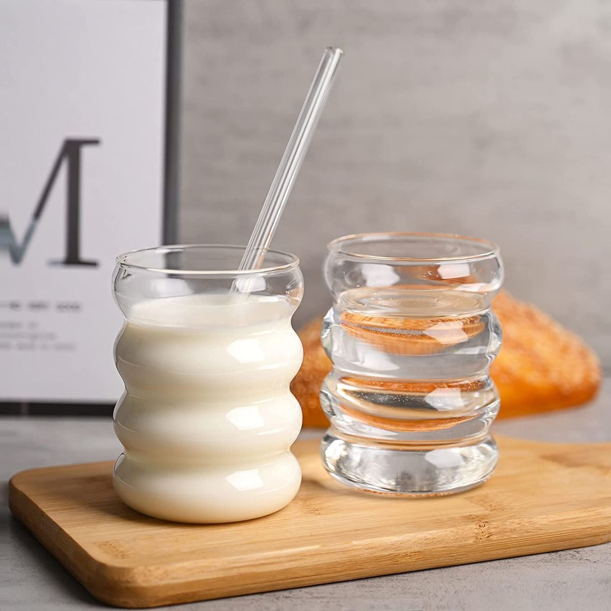 Elevate your drinking experience with our Chunky Aesthetic Pinteresty Ripple Glass - Set of 2 with Glass Stirrers. This unique glass blends style and functionality with its wave-like design, perfect for adding a touch of elegance to any occasion. Enjoy your favorite drinks in a whole new way with this must-have addition to your glassware collection. Its chunky design offers a comfortable grip while sipping your favorite beverage. Elevate your daily routine and add an elegant touch to your kitchen with this sophisticated glass. Perfect for cozy moments and stylish gatherings. Crafted with delicate details, this set is designed to elevate your drinking experience.