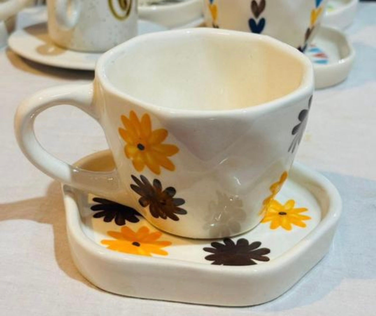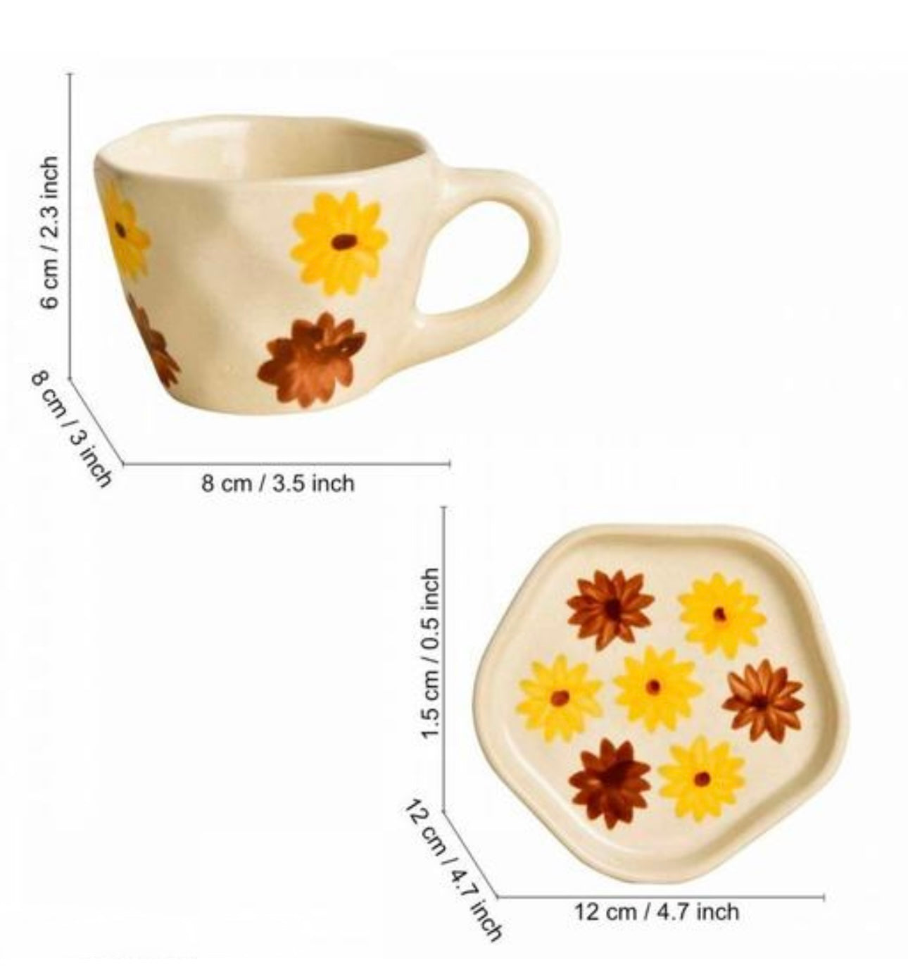 Indulge in the beauty of our Flowers Design Mug & Saucer Set. This stunning set features a delicate floral design that will brighten up your mornings. The perfect way to enjoy your favorite hot beverage while adding a touch of elegance to your kitchen. Start your day with a burst of beauty and charm. With its quirky design and functional benefits, this set is a must-have for any Pinterest lover.