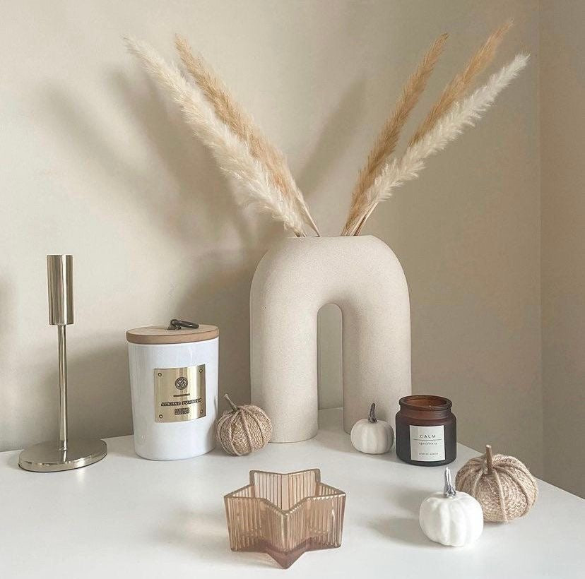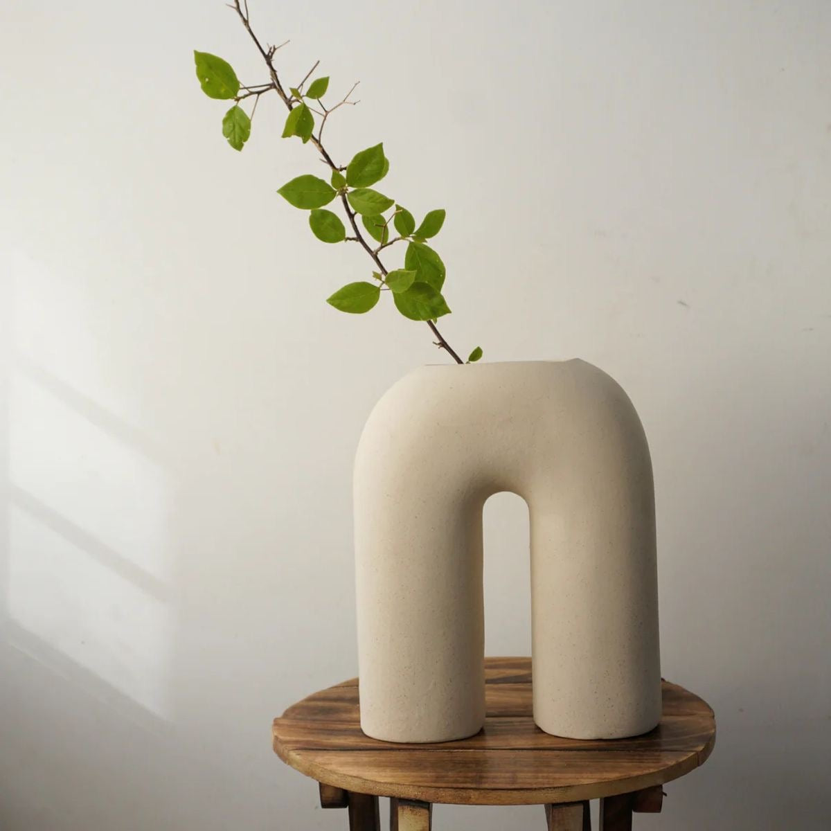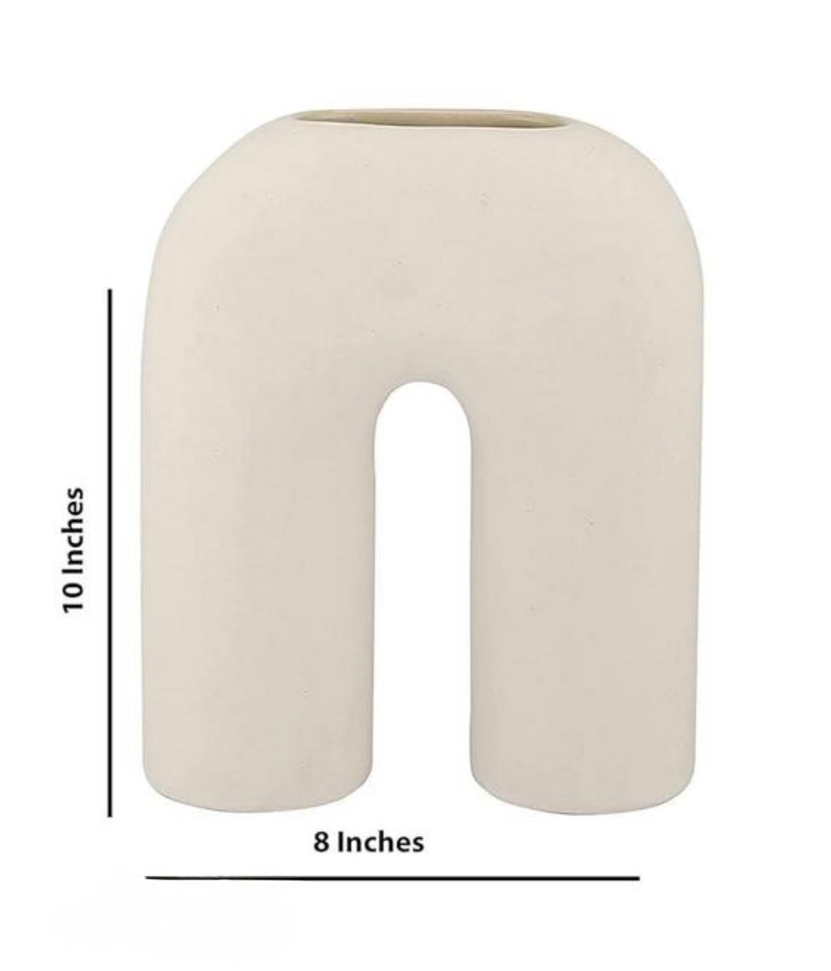 U Shape Ceramic Minimalist White Flower Vase | Inverted U Shape vase | Pampas Grass Vase | Ceramic Vase | Home Decor Centrepiece | vase for Home Decor | Finish Matte (White)