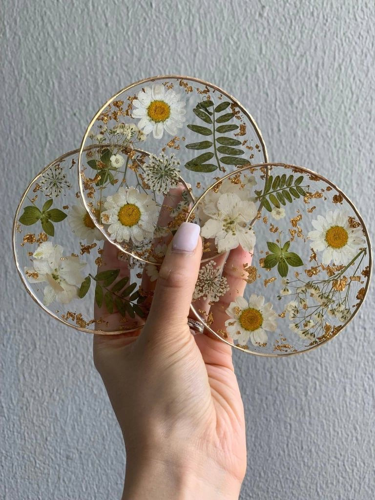 Our floral bloom coasters set are handmade from real flowers and leaves preserved in crystal-clear resin. Perfect for protecting your surfaces in style while adding a pop of color to your space.
