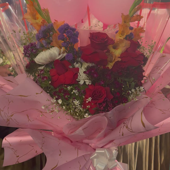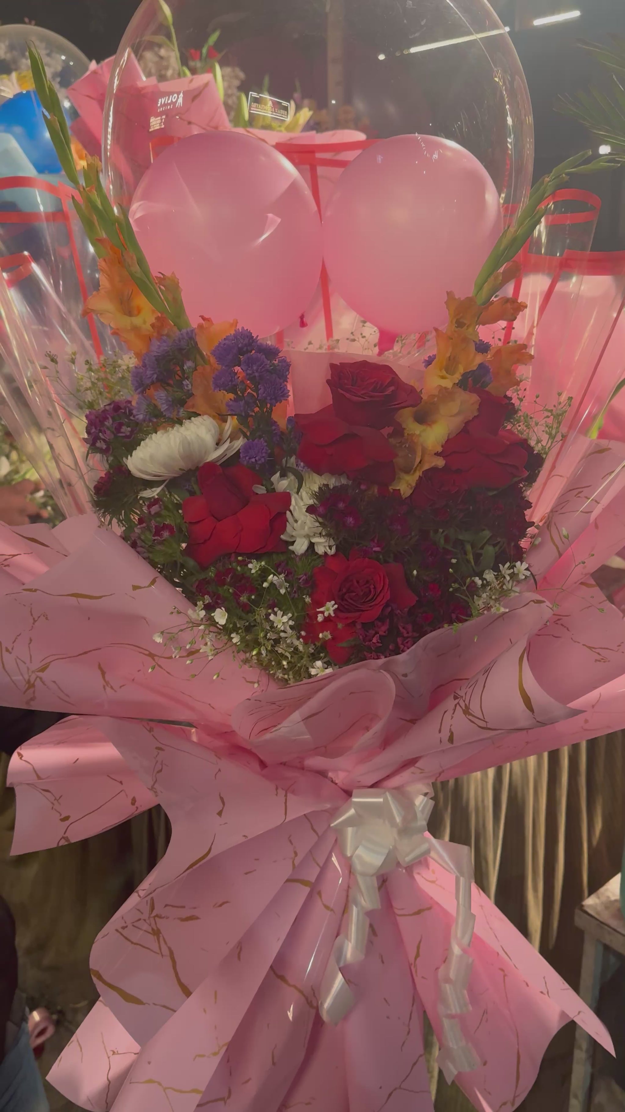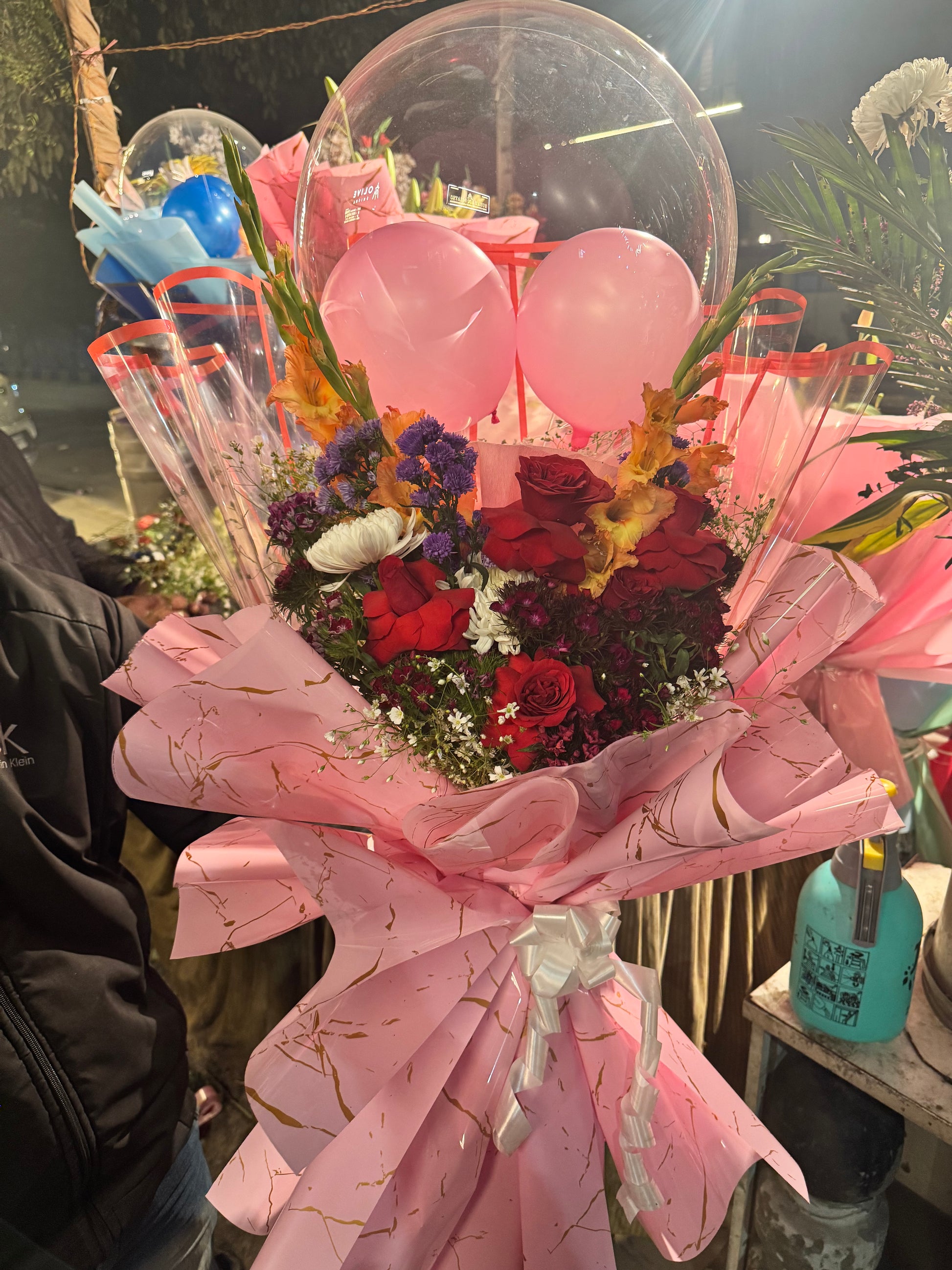 Premium Fresh Flowers Balloon Bouquet (Only deliverable in Delhi/NCR)