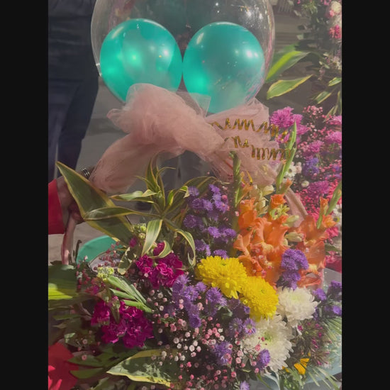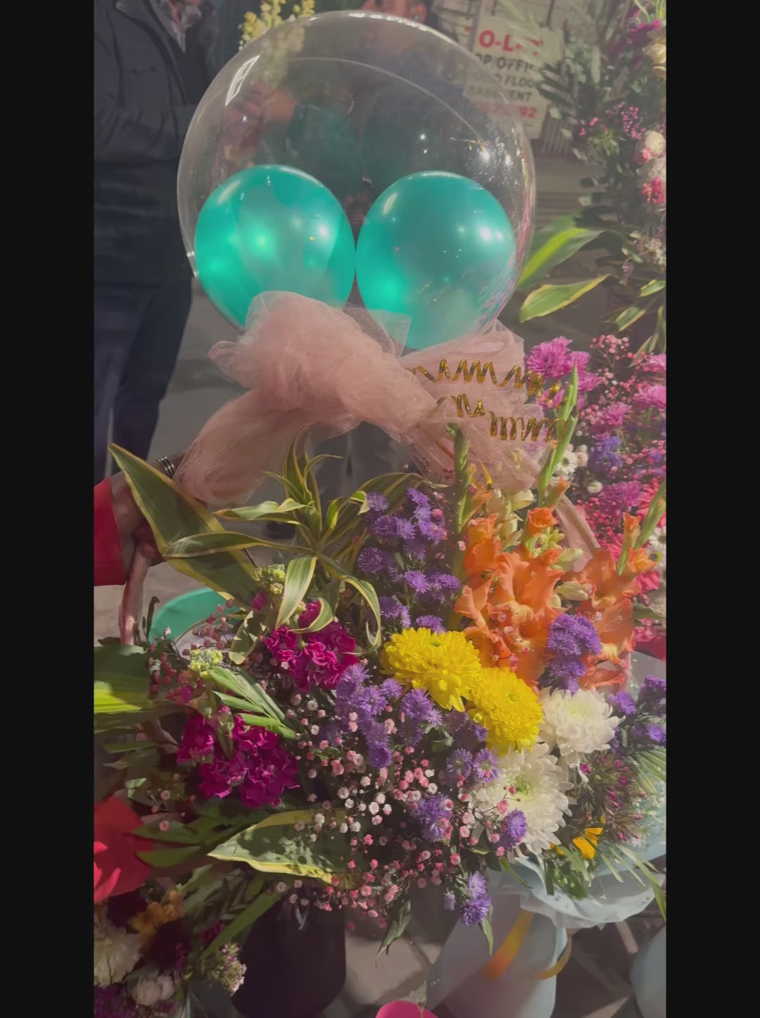 Premium Fresh Flowers Balloon Bouquet (Only deliverable in Delhi/NCR)
