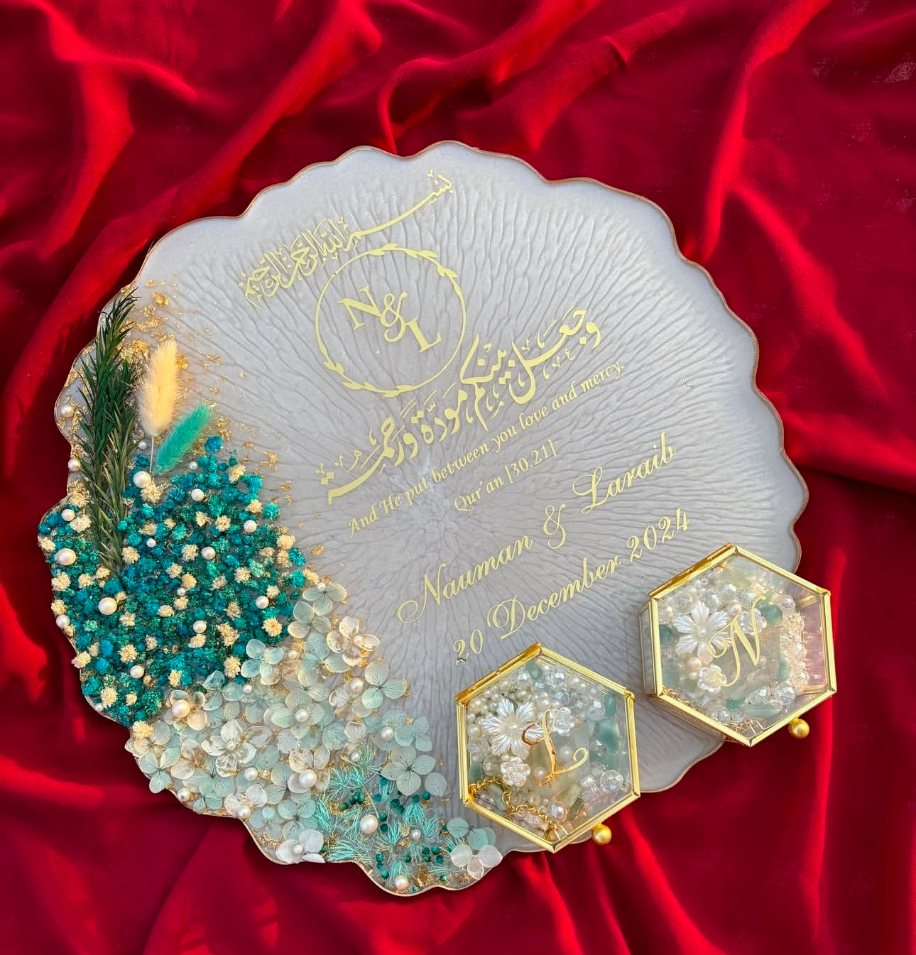 Elevate your engagement ceremony with our customised engagement platter and ring tray. Made to your specifications, this luxurious set is the perfect way to make a statement as you exchange rings. Handcrafted with exquisite materials, it will be a cherished keepsake that reflects your love and style.