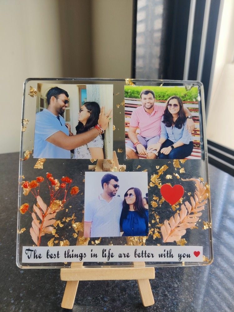 Capture your most treasured memories with our Customised Photo Collage. Create a unique and personalized piece of art that showcases your best moments. Perfect for meaningful gifts or as a stunning addition to your home decor. Surround yourself with nostalgia and cherish your memories forever! Perfect to gift to a friend or family or colleagues, comes with a stand of your choice easel, acrylic or metallic stand.
