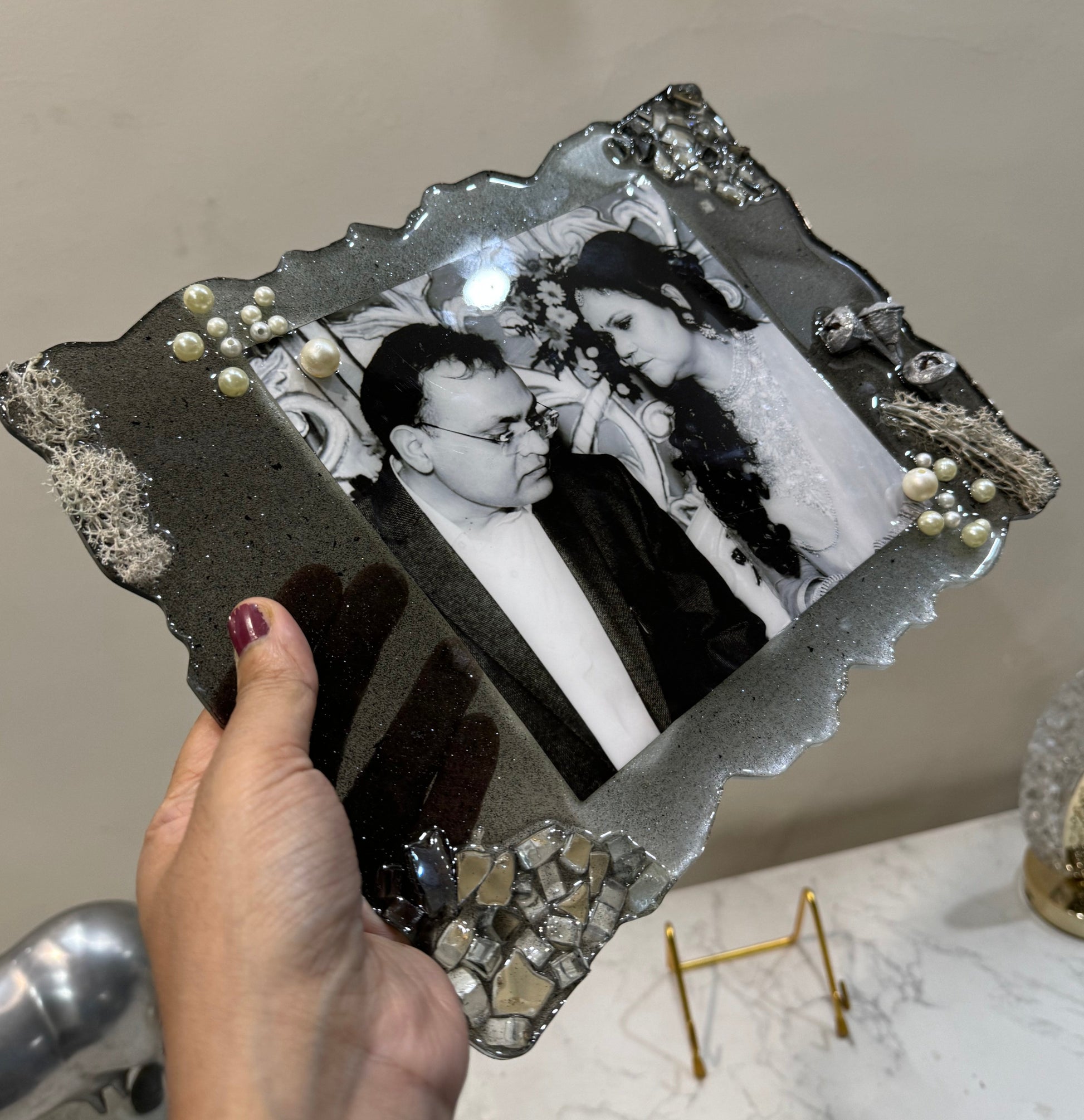 Beautiful personalised photo frames for your loved ones. Perfect to gift to a friend or family or colleagues, comes with a stand of your choice easel, acrylic or metallic stand.