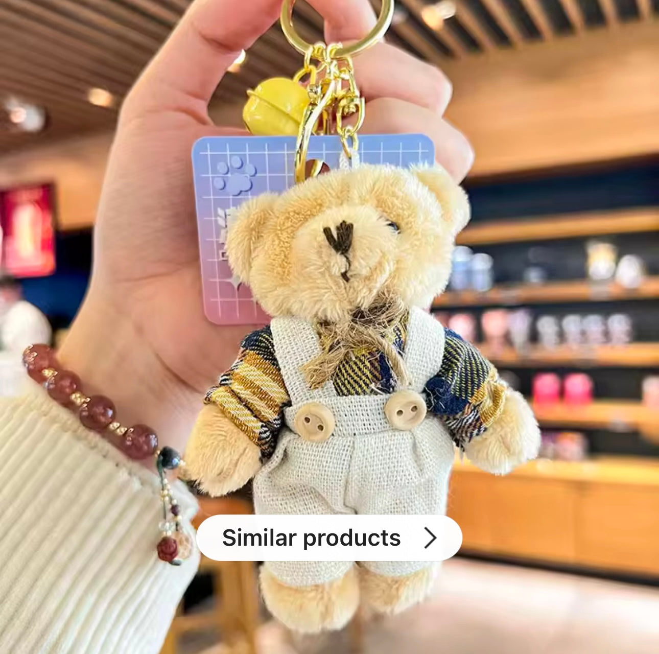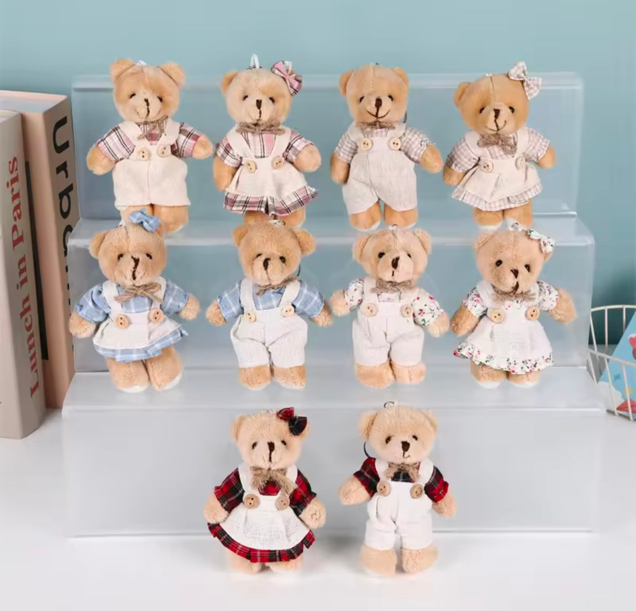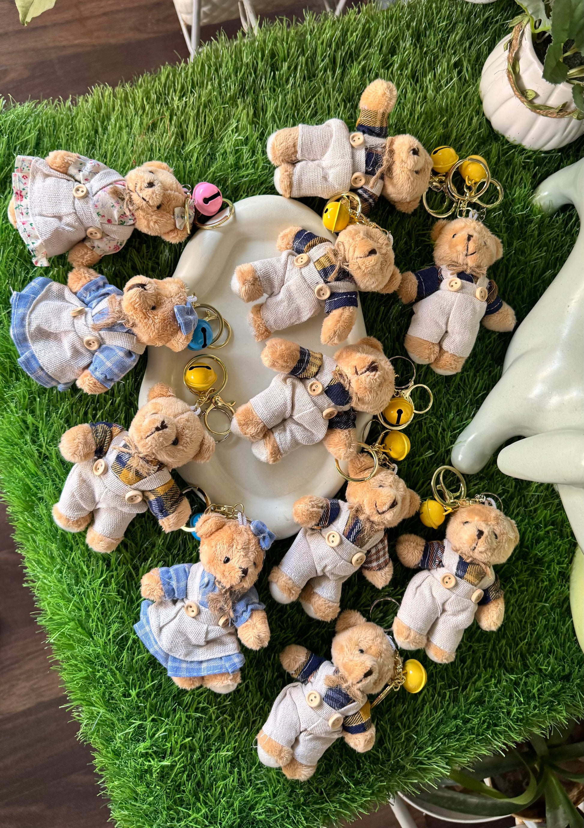 "Add some cuteness and style to your keychain collection with these exclusive teddy bears in adorable outfits. Perfect for expressing your fun and playful side, these keychains will be the envy of all your friends. Get yours now!" Bring your favorite teddy bear with you wherever you go with our exclusive keychain collection! These adorable teddy bears are dressed in cute outfits that will add a touch of charm to your keys. Never lose your keys again and show off your love for teddy bears with these keychains.