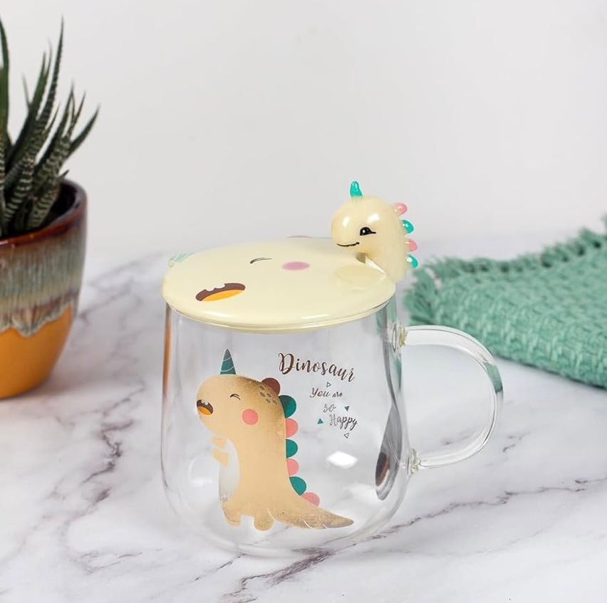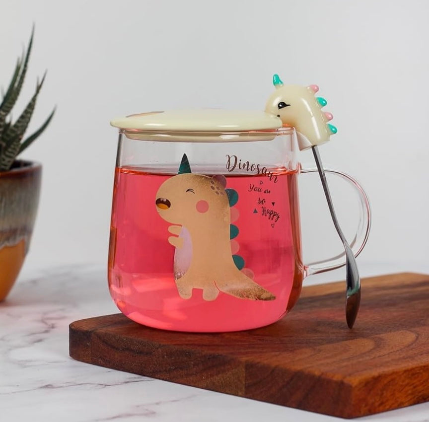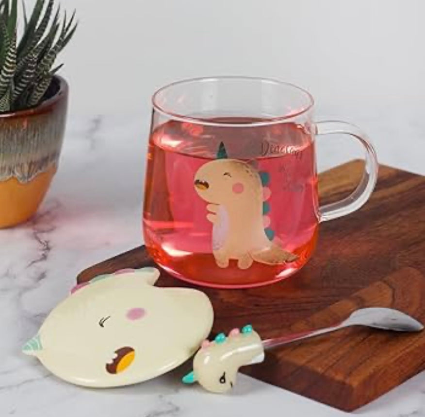 Ceramic Transparent Dino Mug with Lid & Spoon