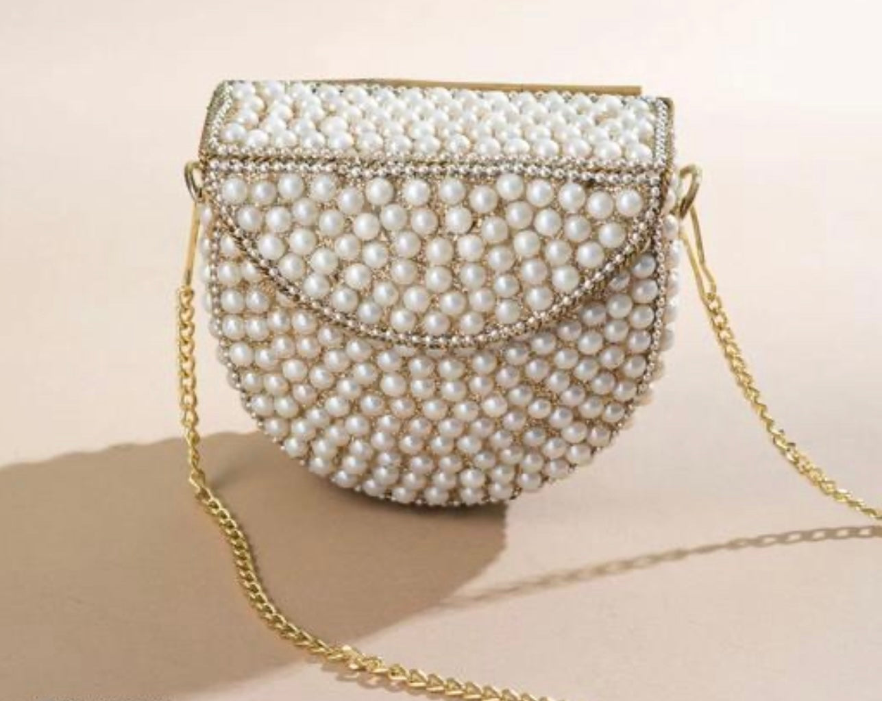 "Add some sparkle to your everyday look with our exquisite Mini Pearl Clutch Bag. The shiny pearls add a touch of glam while the unique style provides practicality and comfort. Stay stylish and organized with this unique & stylish bag!" Made with exquisite attention to detail, this bag features sparkling pearls that elevate any outfit. With its compact size and clutch design, it is the perfect accessory for a night out or a special occasion. Experience the ultimate blend of glamour and sophistication with this must-have piece.
