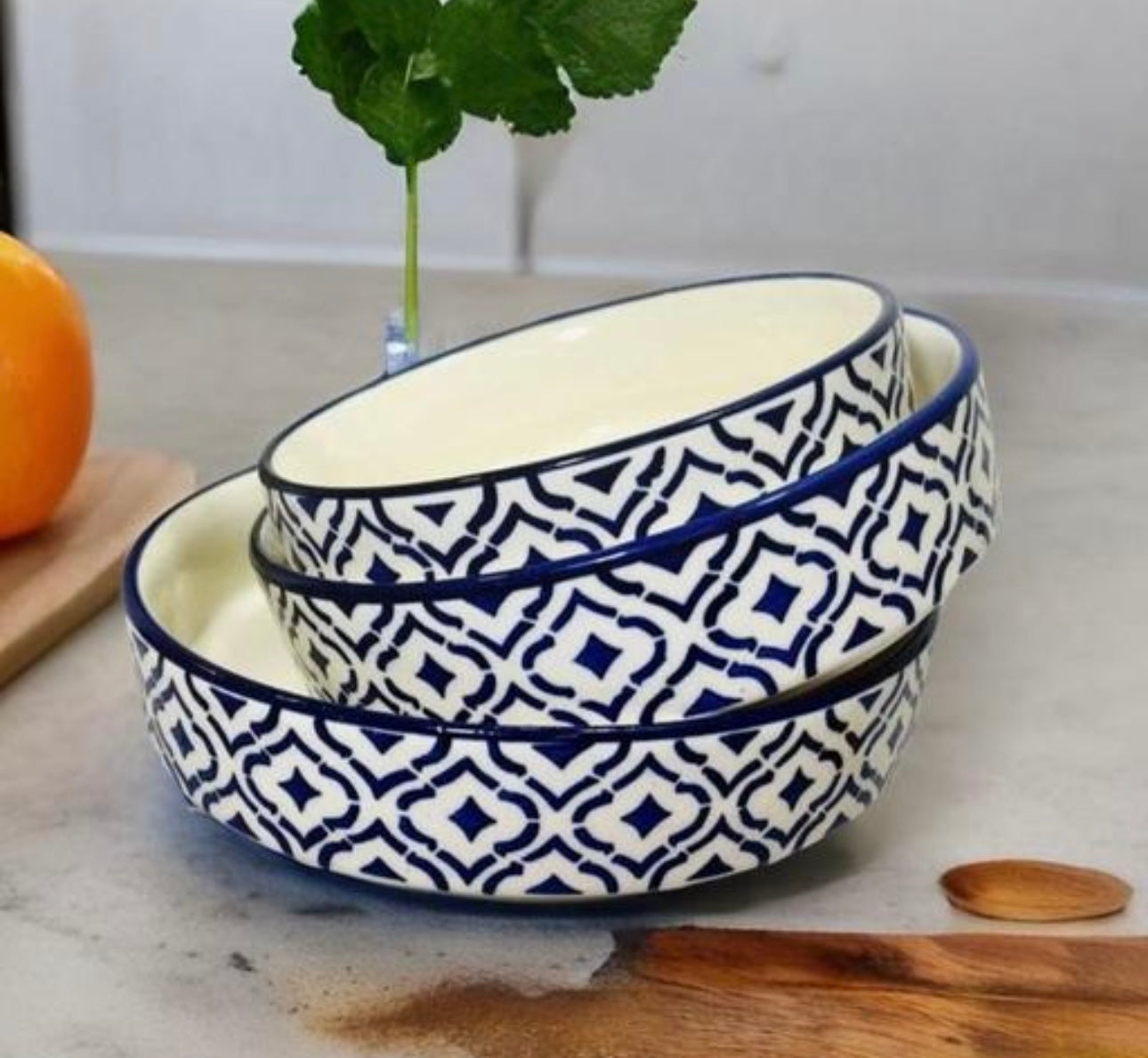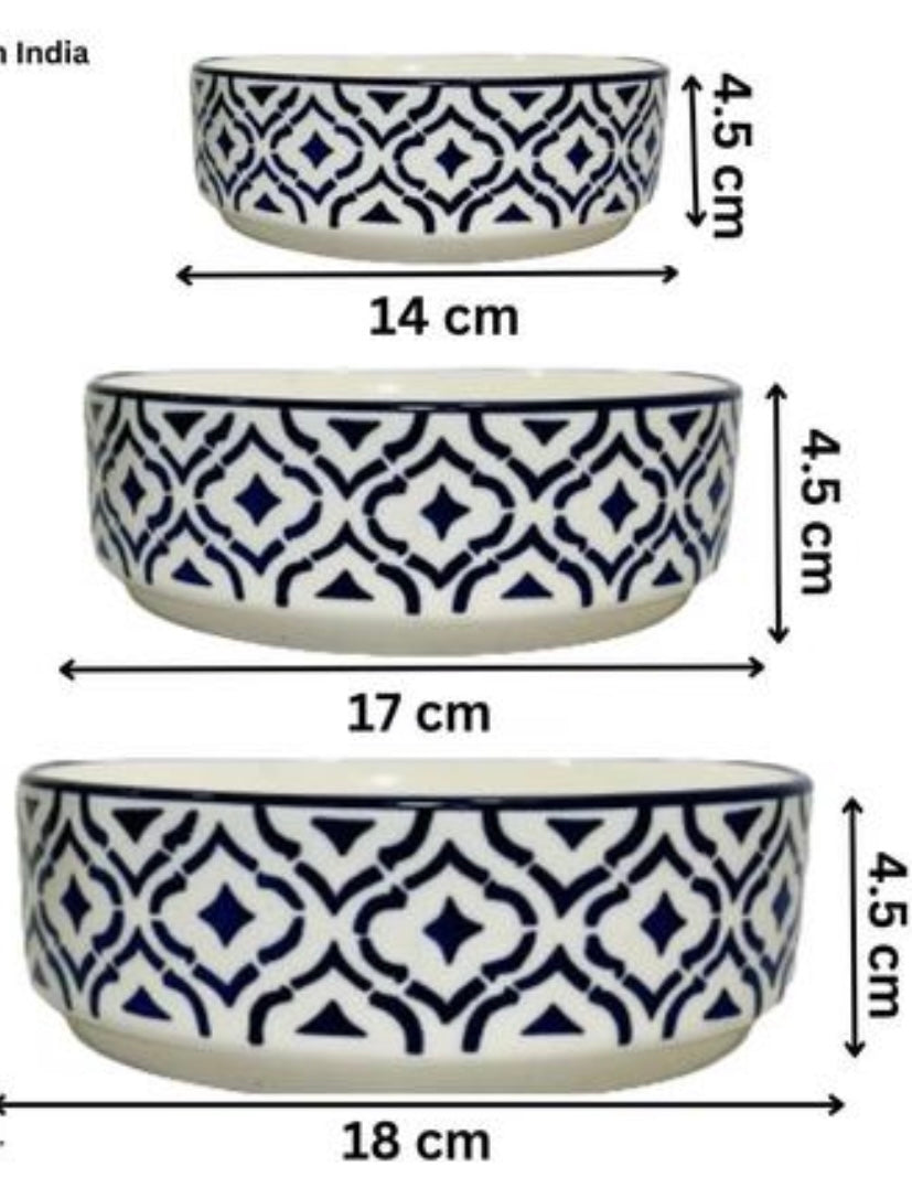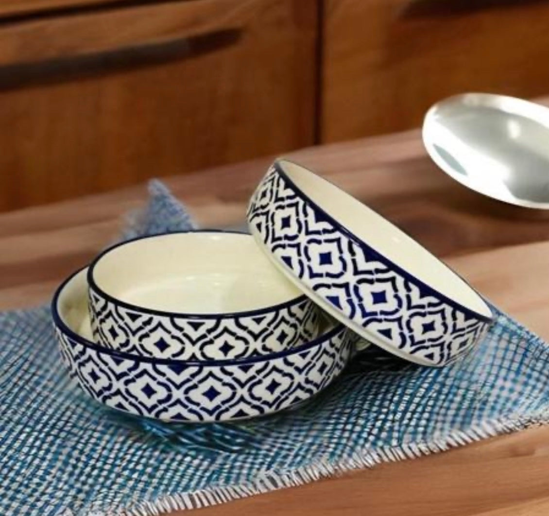 Elegant Ceramic Stoneware Premium Deep Salad Bowls - Set of 3