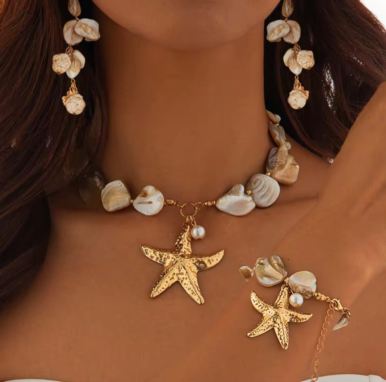 Bohemian Ocean Elements Starfish & Shell Design Necklace