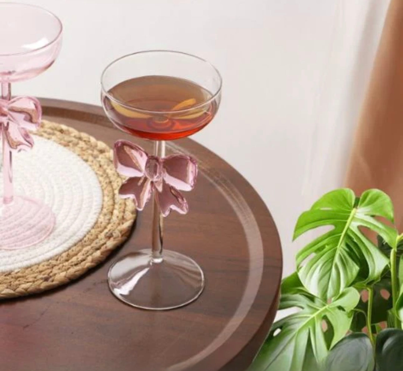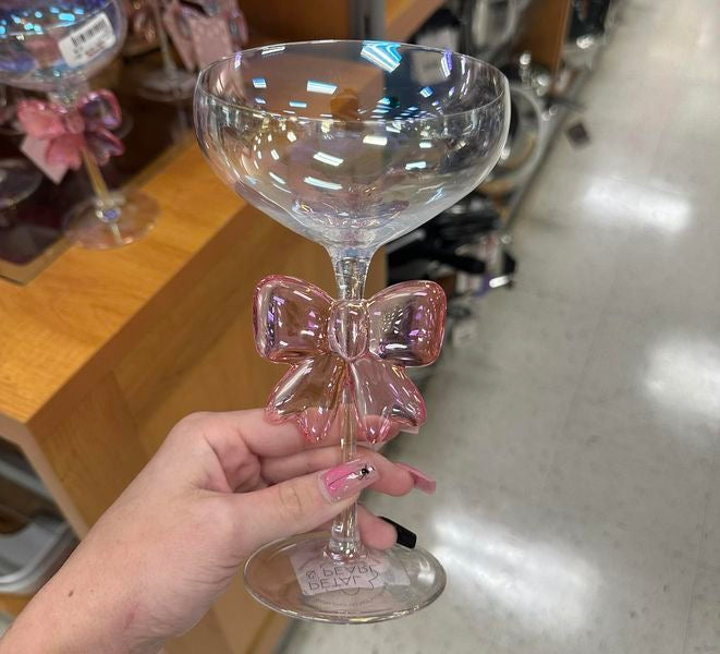 Exquisite Pink Bow Coupe Wine Glass
