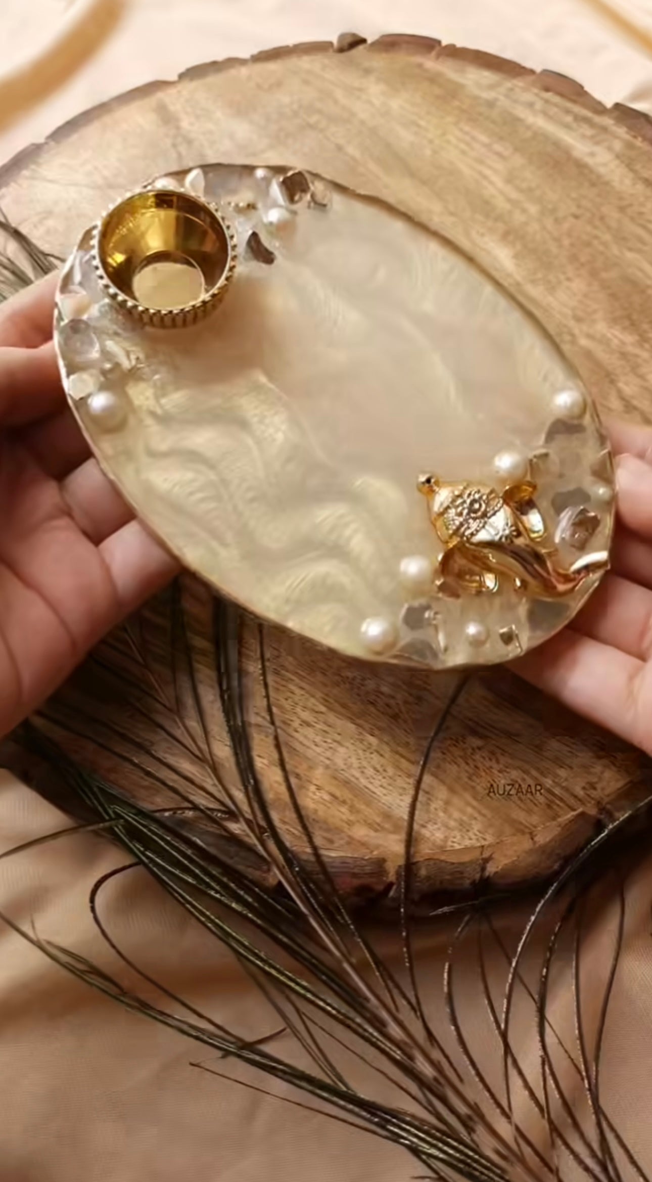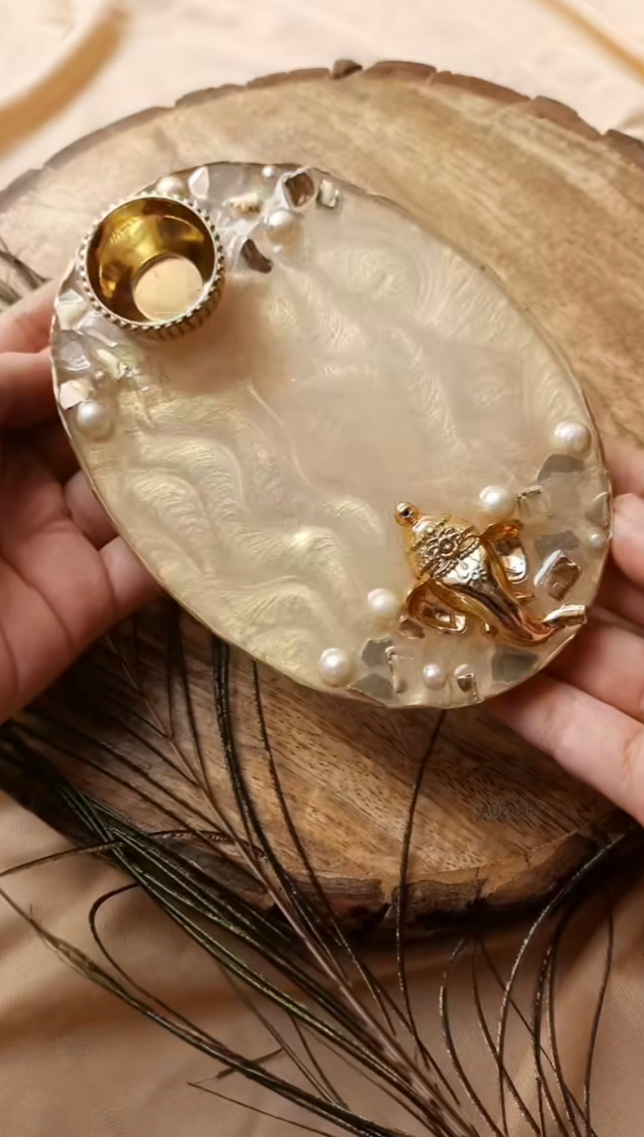 Make the festivals extra special for your loved ones with these beautiful and unique pooja thalis for Diwali / Karwachauth / Rakshabandhan / auspicious occasions. This gorgeous thali is worth looking at, is made of durable and high-quality resin material that is designed to last. Its lovely colors and gold flakes add a burst of enchantment to any occasion. This special thali is an ideal token of your appreciation and love - the perfect way to celebrate this special bond with your loved ones. Beautifully handmade with intricate details, the thali features smooth edges and intricate detailing. Add a touch of elegance to your home decor with this unique thali.