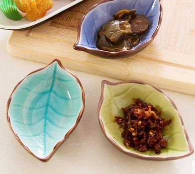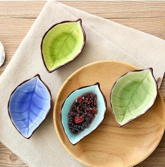 Ceramic Leaf Shaped Small Dip/Chutney Bowls - Set of 4