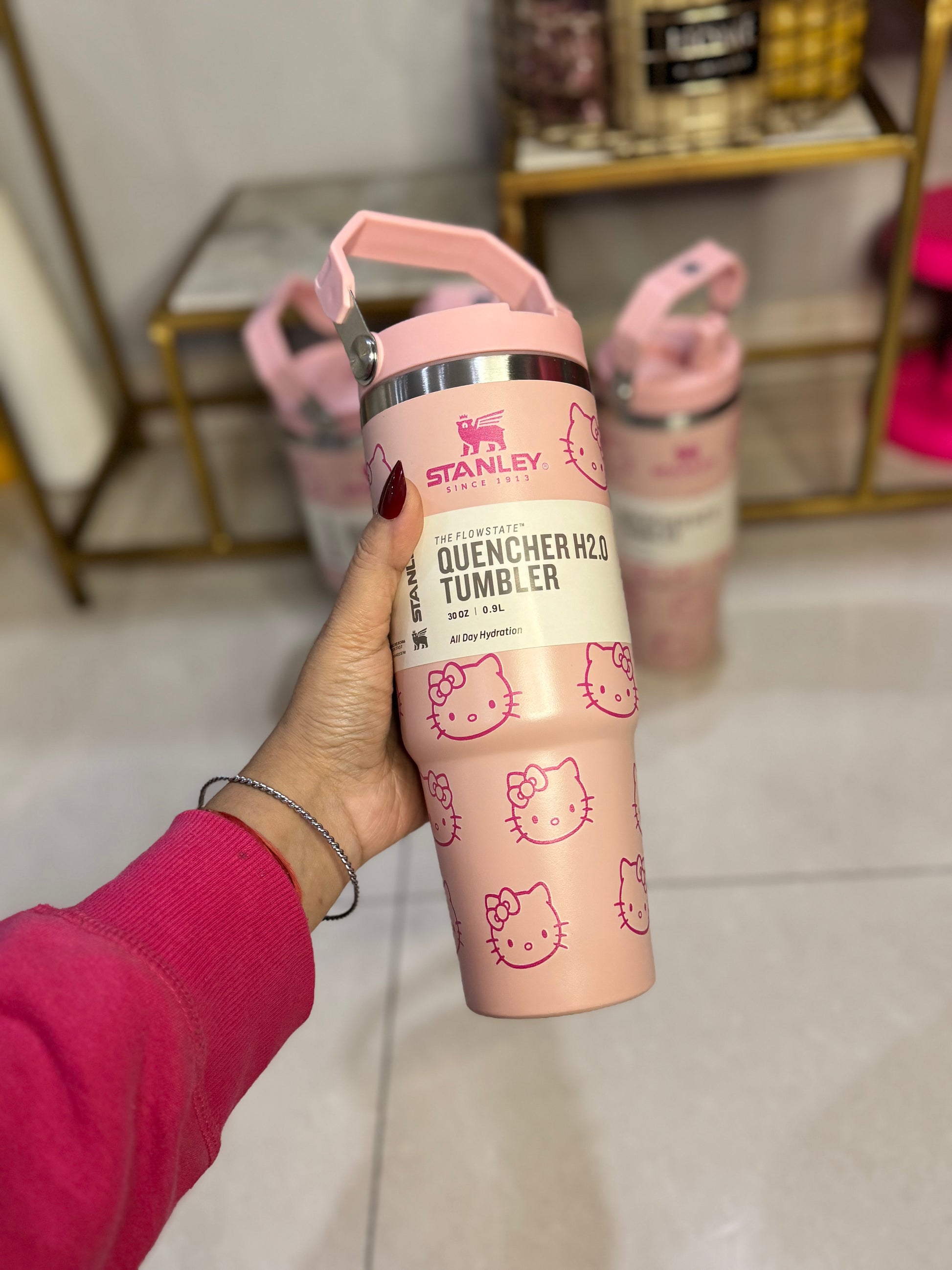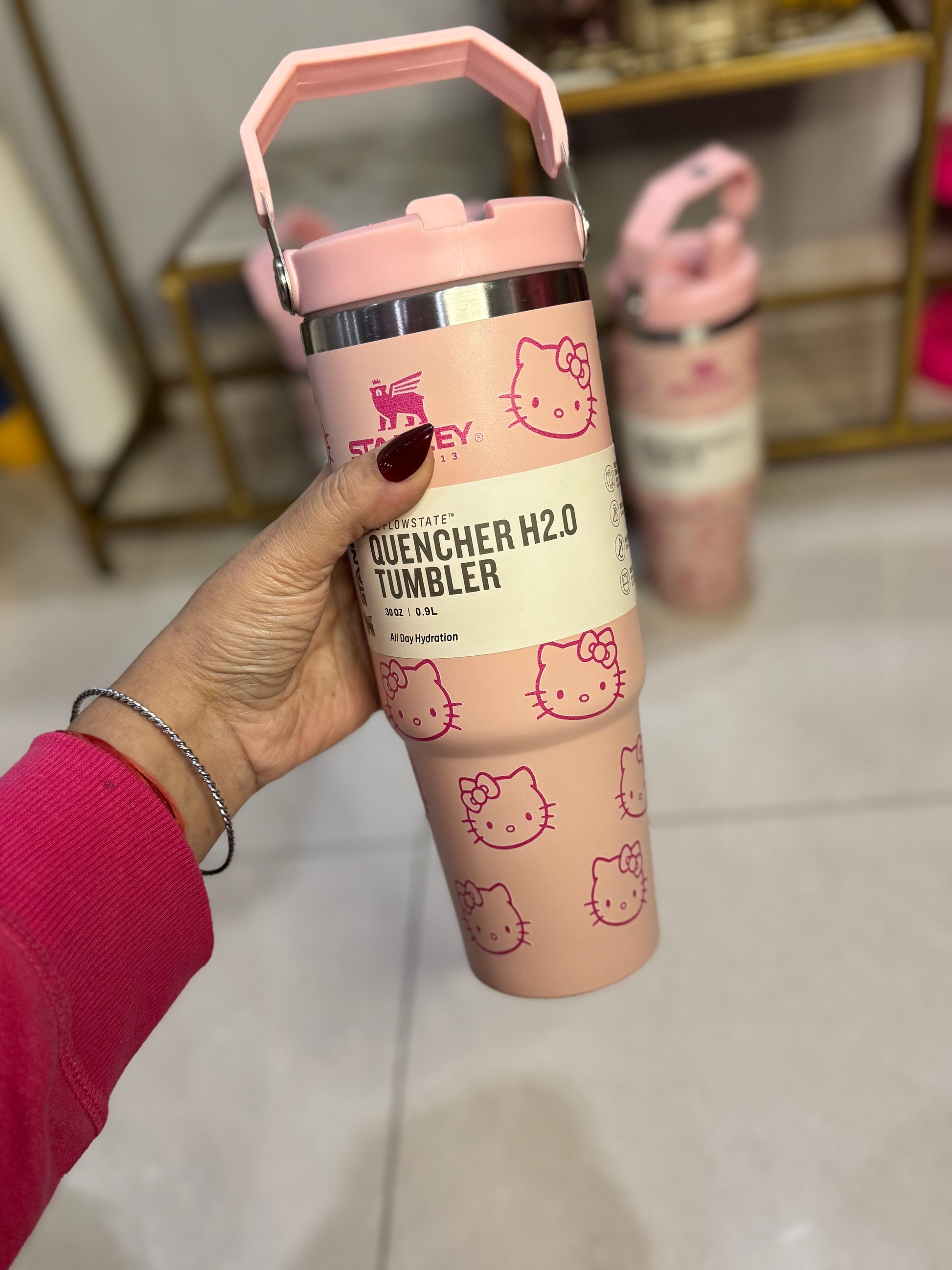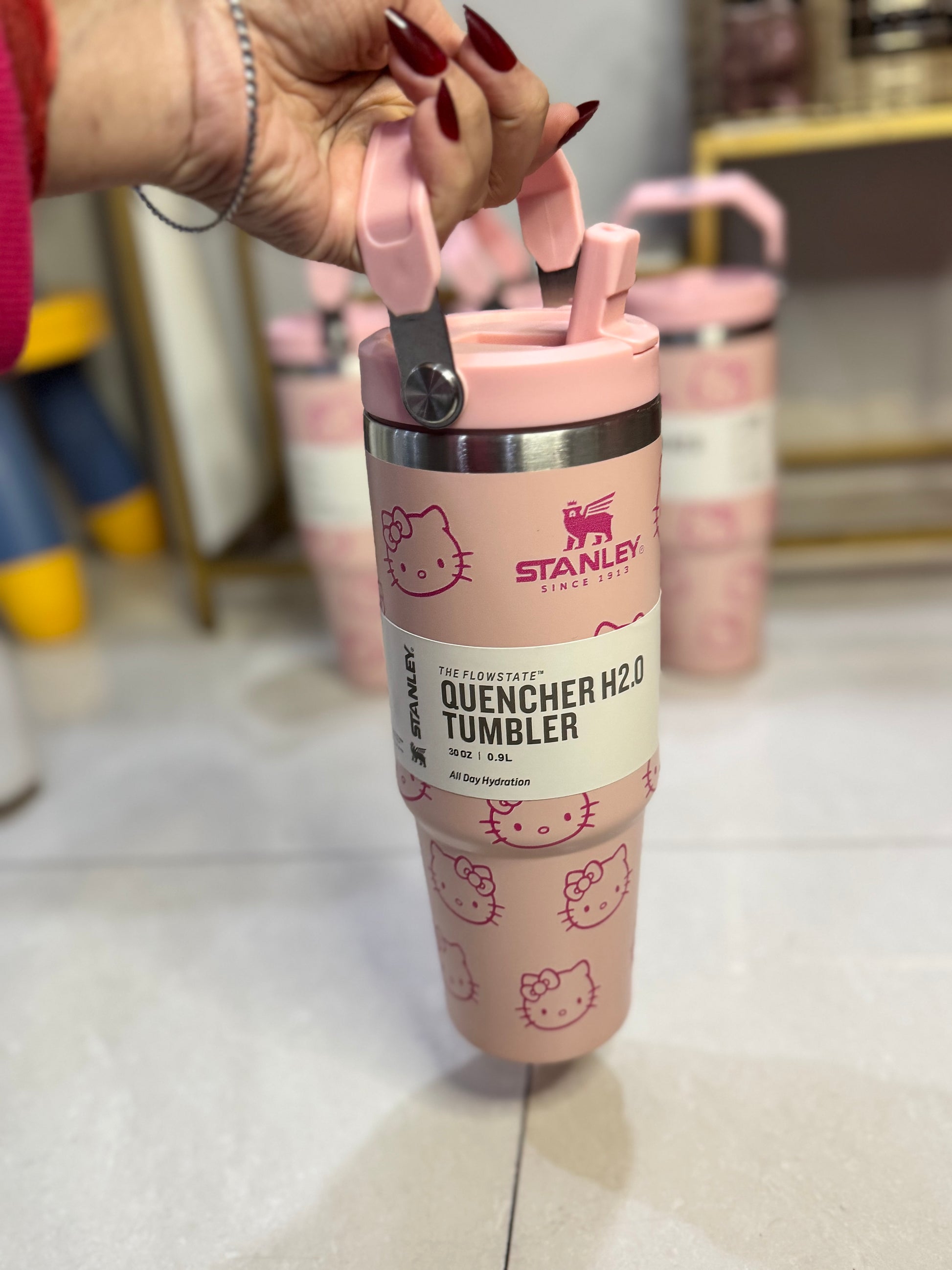 - Stay hydrated with the "Hello Kitty” Insulated Tumbler, an exclusive featuring your favorite Hello Kitty character! This isn't just any tumbler; it's a collaboration with Stanley, bringing their legendary durability and insulation to a collection. With a generous capacity, a convenient straw lid, and a design that fits most car cup holders, this tumbler is the perfect companion for school, work, road trips, or any adventure. It's more than just a tumbler; it's a celebration of Hello Kitty charm, a testament to Stanley's quality, and a must-have for any fan who wants to keep their drinks at the perfect temperature while showcasing their love for this iconic character. This is a great choice for those who want a fun, functional, and stylish way to stay hydrated on the go. The "Hello Kitty" Insulated Tumbler is designed to impress, offering a unique blend of Sanrio cuteness and Stanley's renowned performance.
