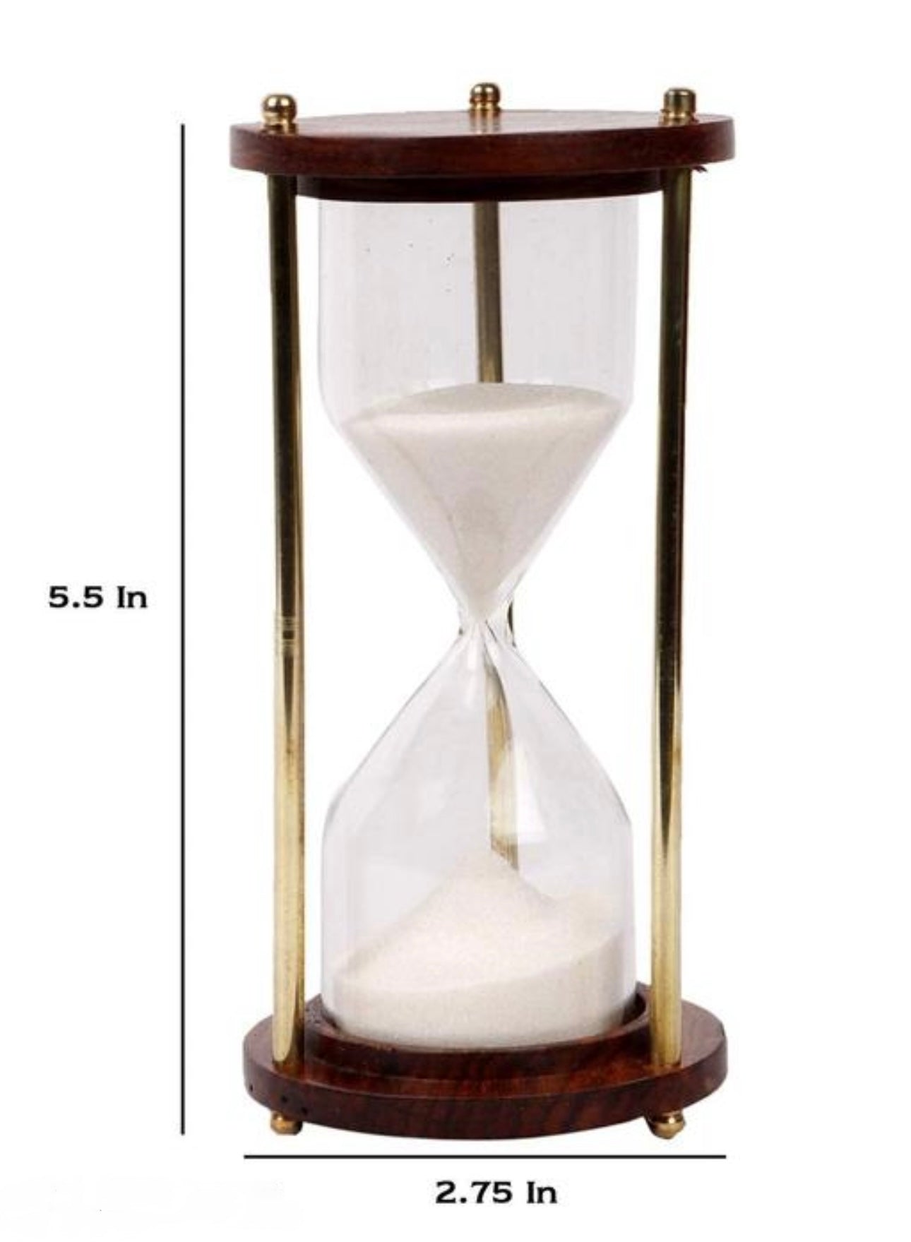 "Keep track of time in style with our Nautical Vintage Style Brass & Wooden Hourglass/Sand Timer! Crafted with intricate brass details and elegant wood, it adds a touch of old-world charm to any space. Perfect for both practical and decorative use, it's a timeless addition to your home."