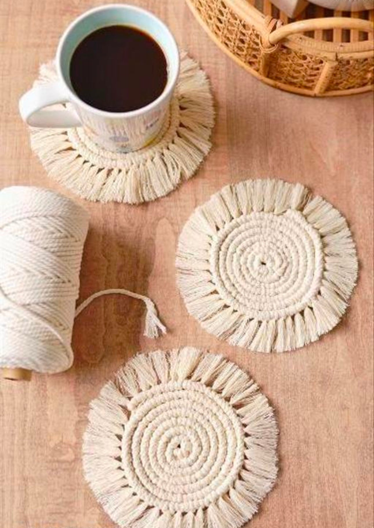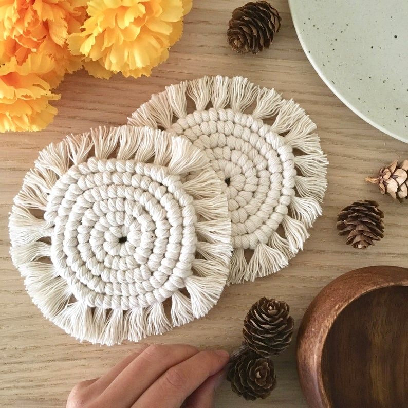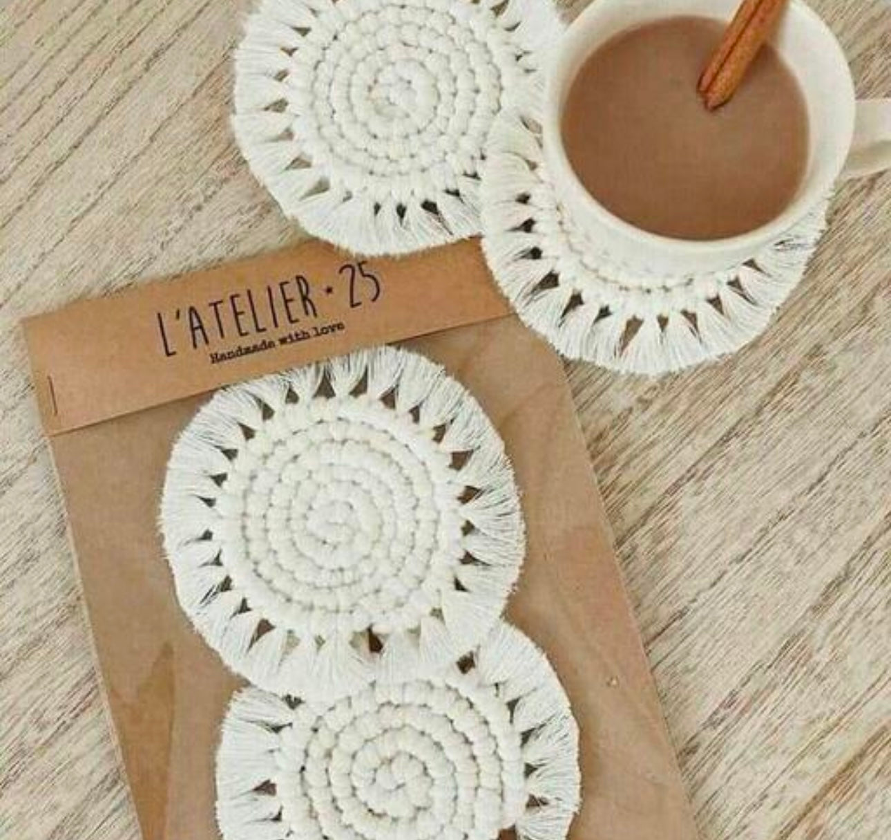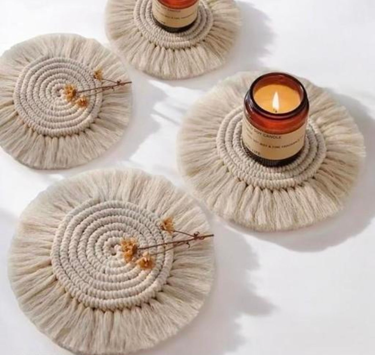 Upgrade your home decor with our luxurious Boho Macrame Coasters- Set of 4. Made from high-quality, hand-woven, these coasters will add a touch of sophistication to any table setting. Protect your surfaces in style, while embracing the beauty of nature with our set of 4 coasters.
