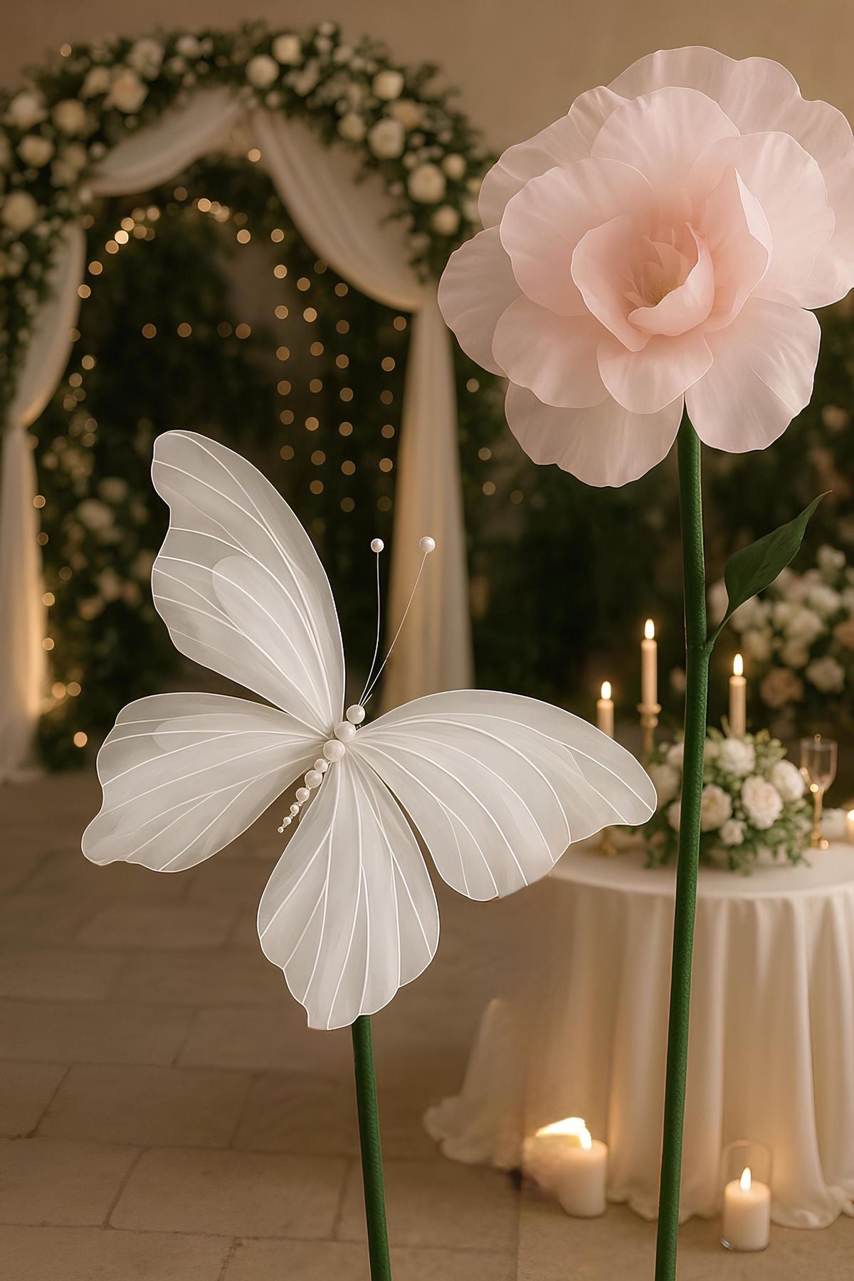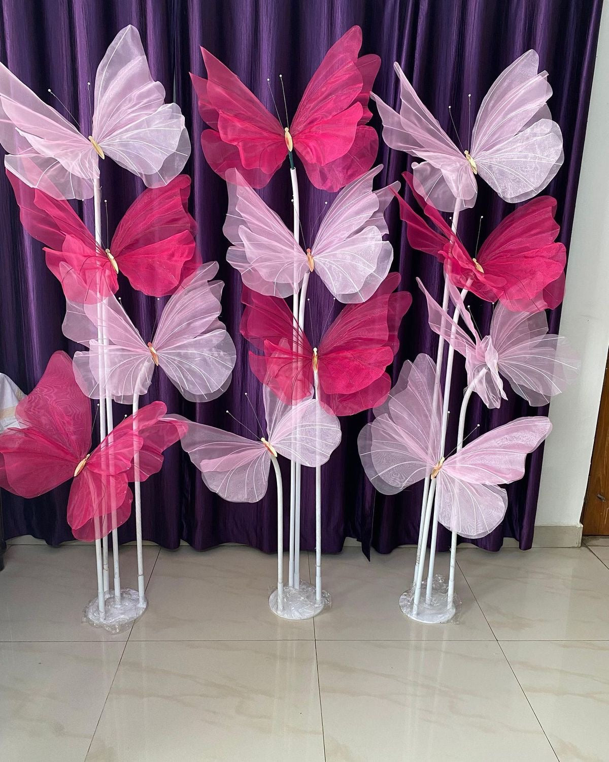 Elevate your home decor with our luxurious Large Artificial Organza Fabric Butterflies. Made with intricate detail and high-quality materials, these flowers add a touch of sophistication to any room. Perfect for special occasions or everyday elegance. These lifelike butterflies provide all the charm and beauty of real peonies without the maintenance. Perfect for weddings, events, and everyday home decor. Transform your space with these stunning blooms!