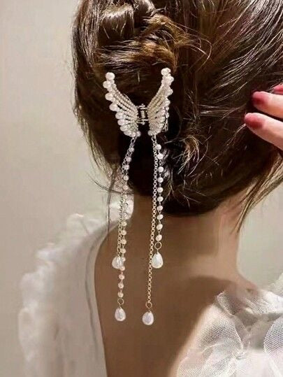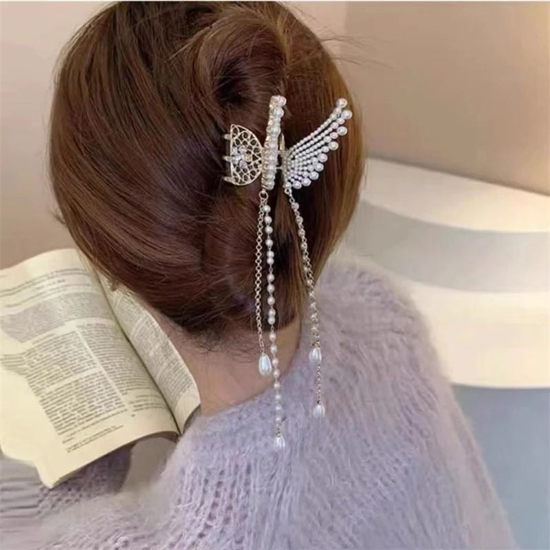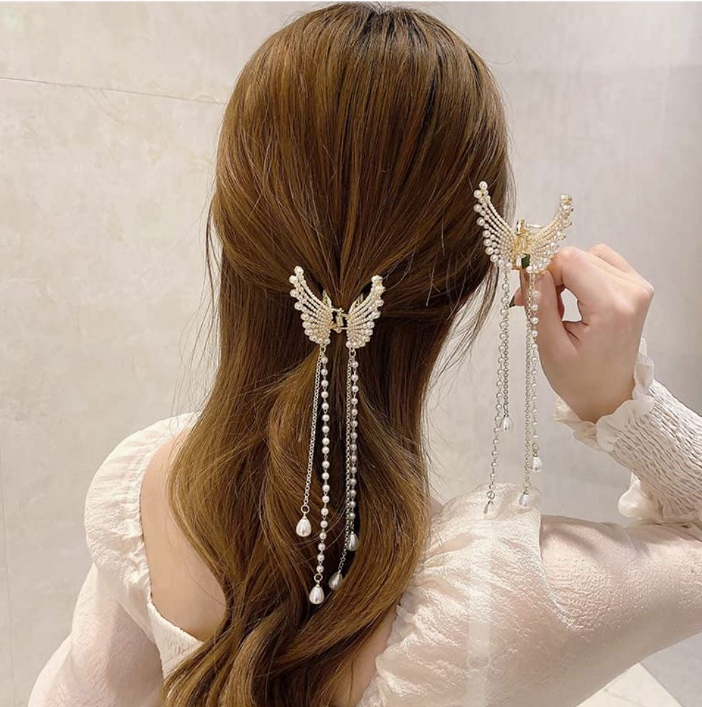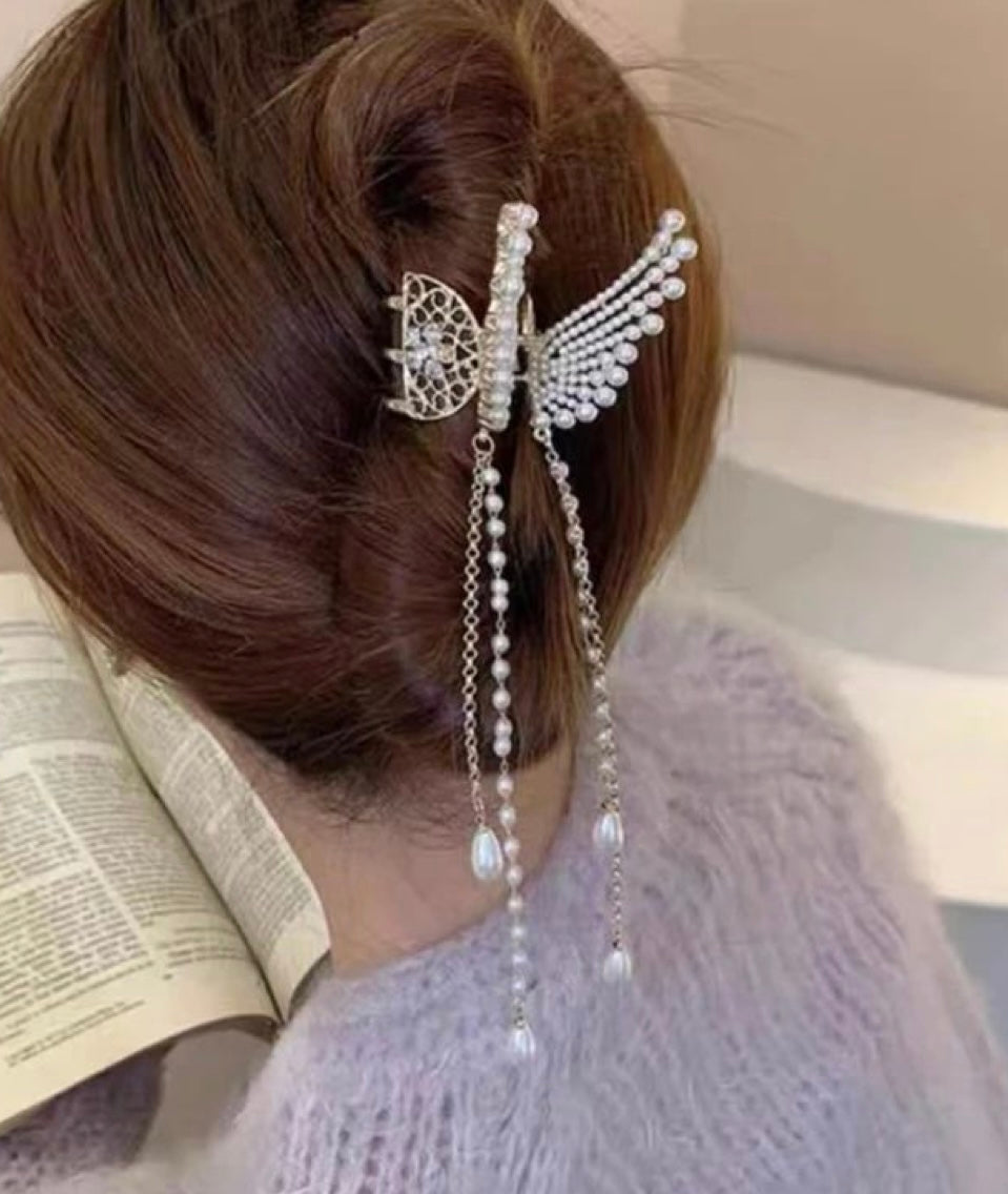 Introducing our Korean Style Butterfly Metal Long Hairclip / Clutcher, the stylish and trending hair accessory featuring rhinestone details. Add a touch of elegance to your hair with this must-have piece. Perfect for any special occasion or everyday wear.