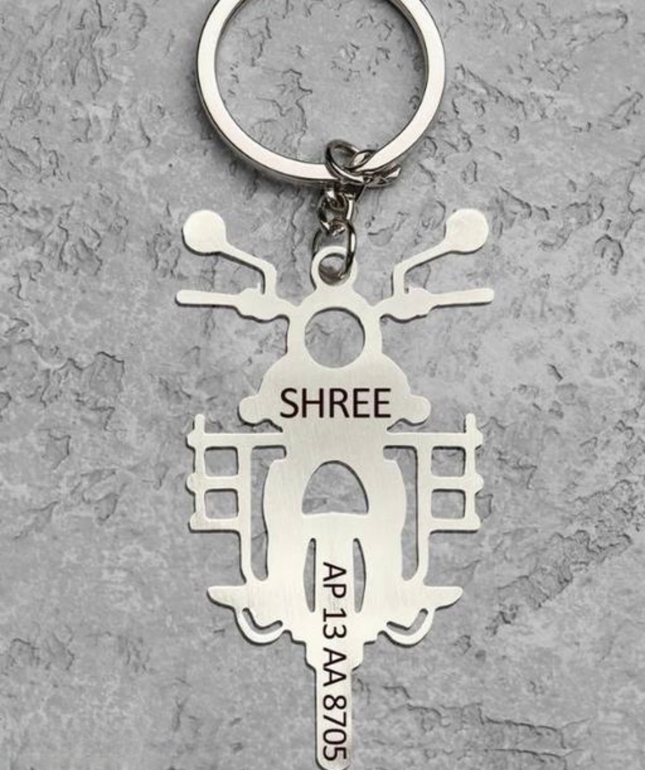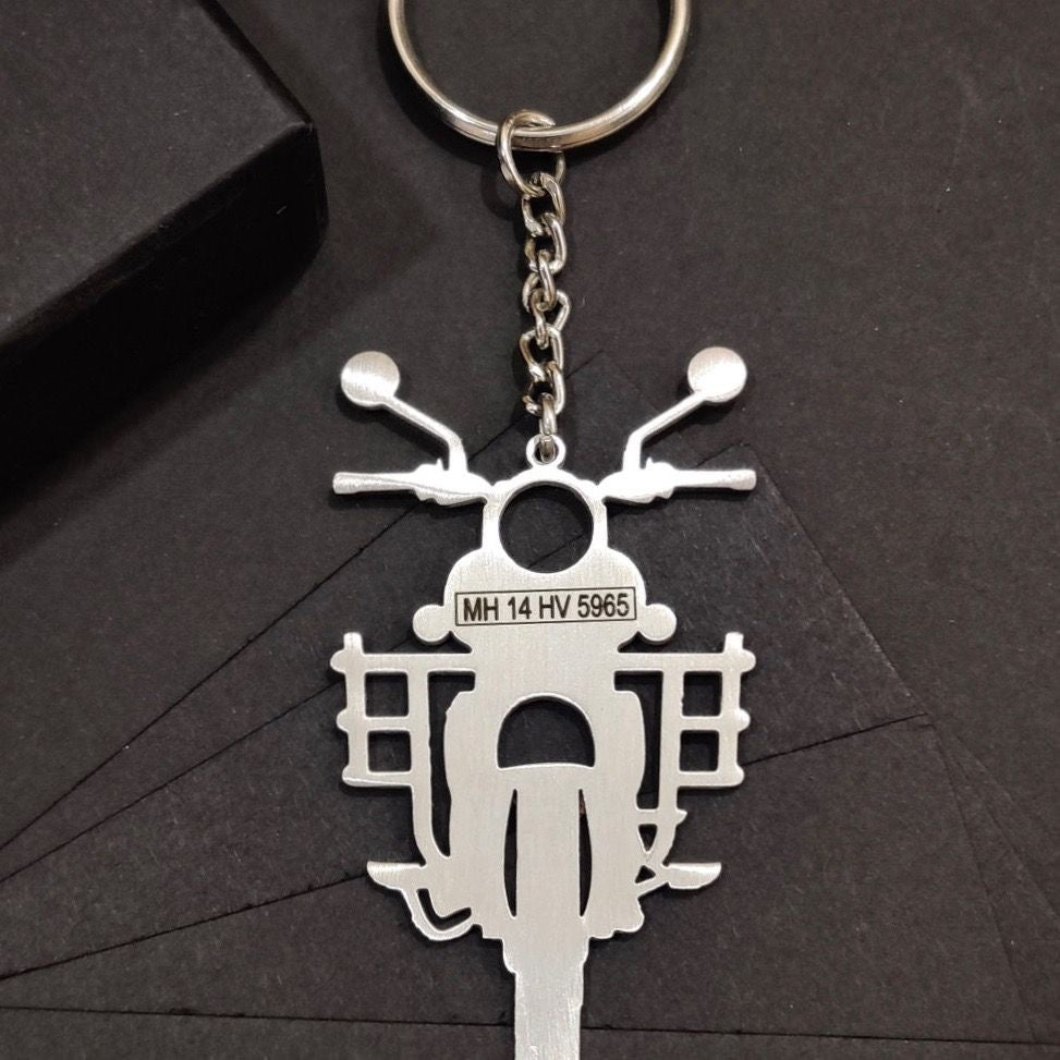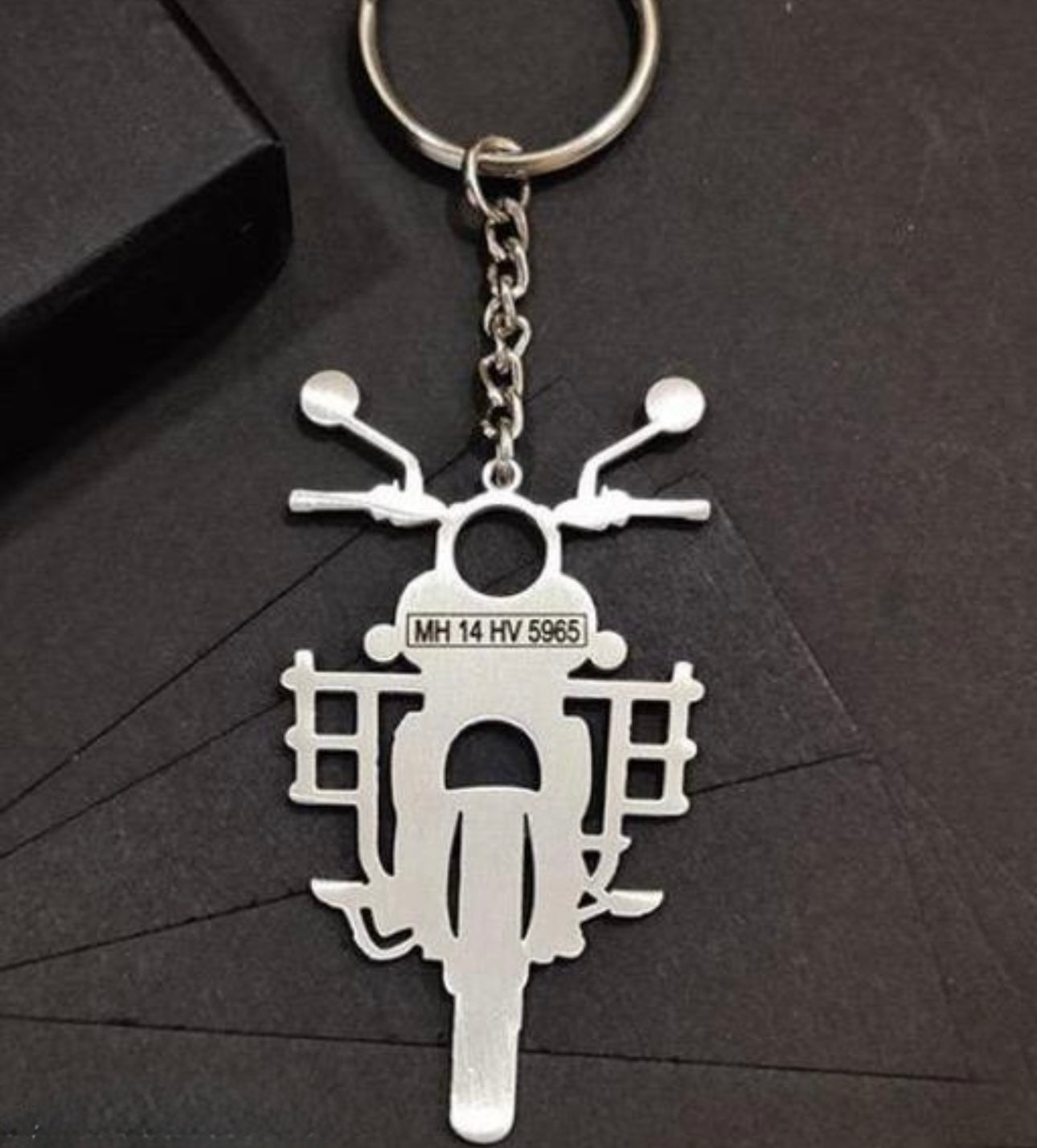 "Add a touch of elegance and personalization to your keys with our Personalised Royal Enfield Keychain. Crafted with premium material and featuring a sleek design, it is the perfect accessory for any Royal Field enthusiast. Makes a great gift for yourself or a loved one."