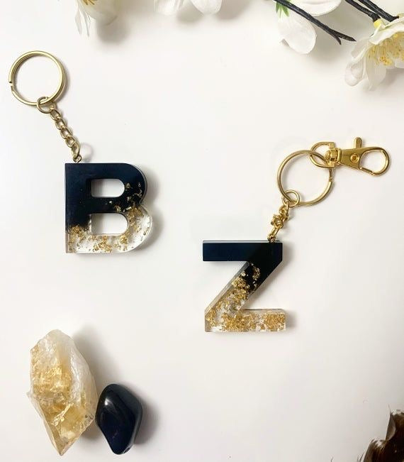 Our personalized initial keychains are a unique and thoughtful way to show someone you care. Each keychain is handmade with high-quality epoxy resin and can be customized with a variety of different inclusions.