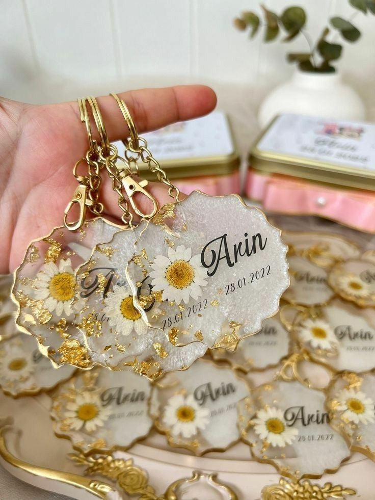 Our personalized keychains are a unique and thoughtful way to show someone you care. Each keychain is handmade with high-quality epoxy resin and can be customized with a variety of different inclusions, such as names, initials, dates.