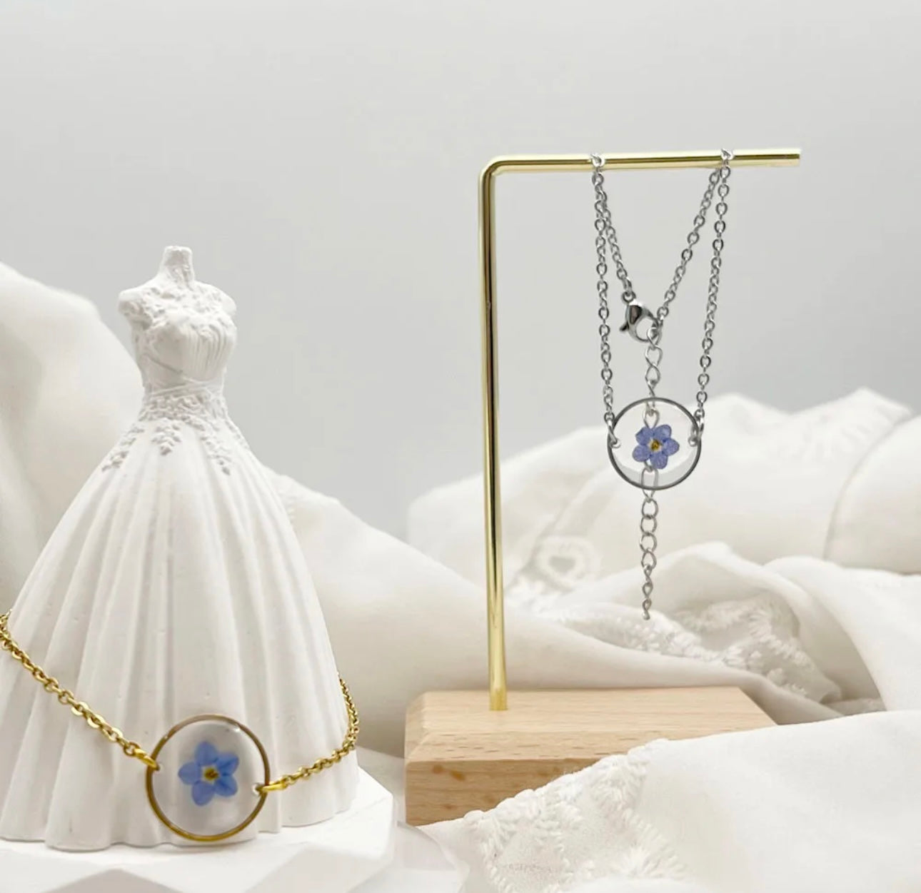 Introducing our Forget Me Not Dried Flower Bracelet , a stunning piece of real flower jewelry that exudes natural beauty and botanical elegance. This handcrafted bracelet features a mesmerizing coreopsis flower preserved delicately in organic resin, capturing its vibrant colors and delicate details for eternity.