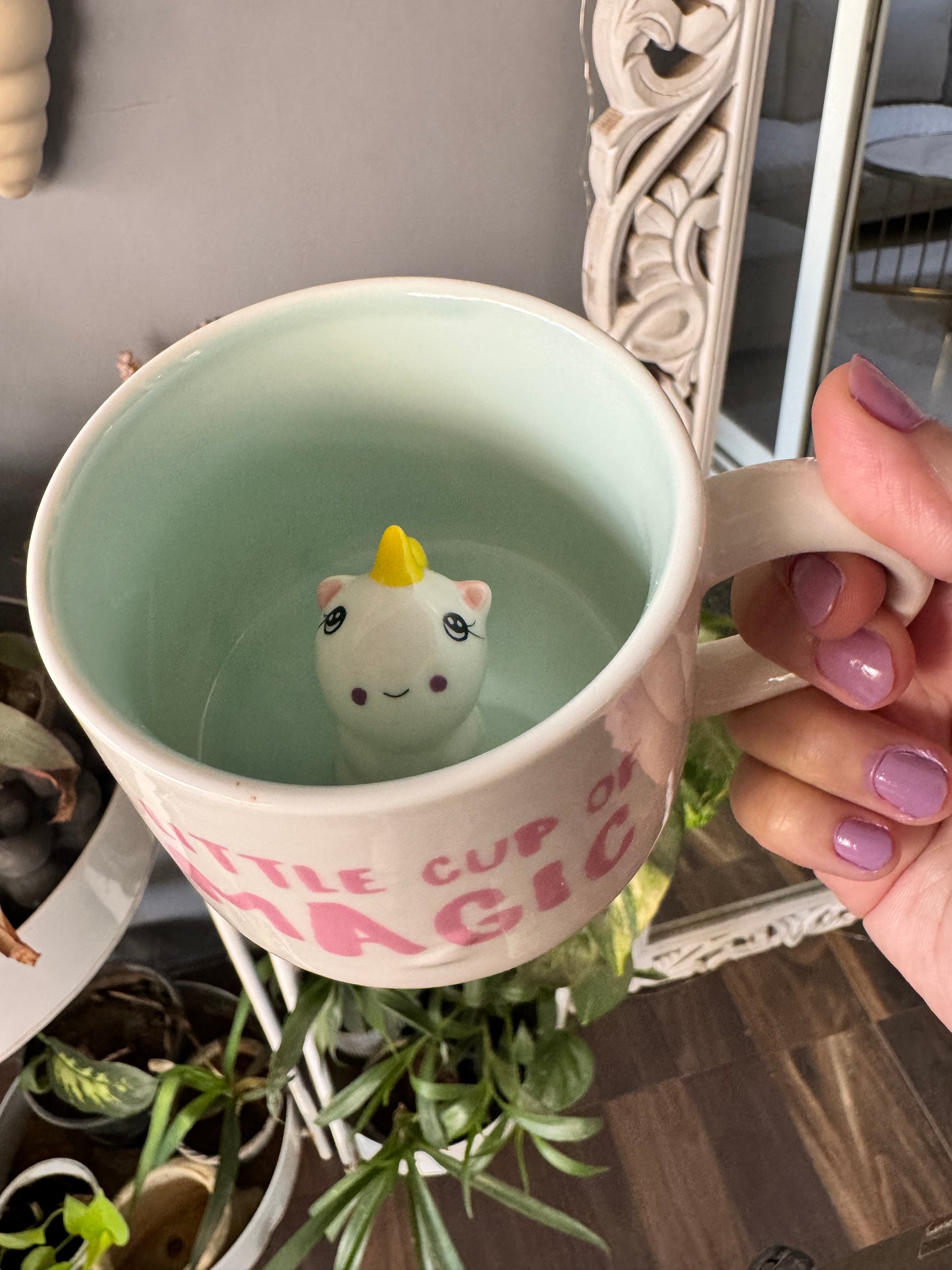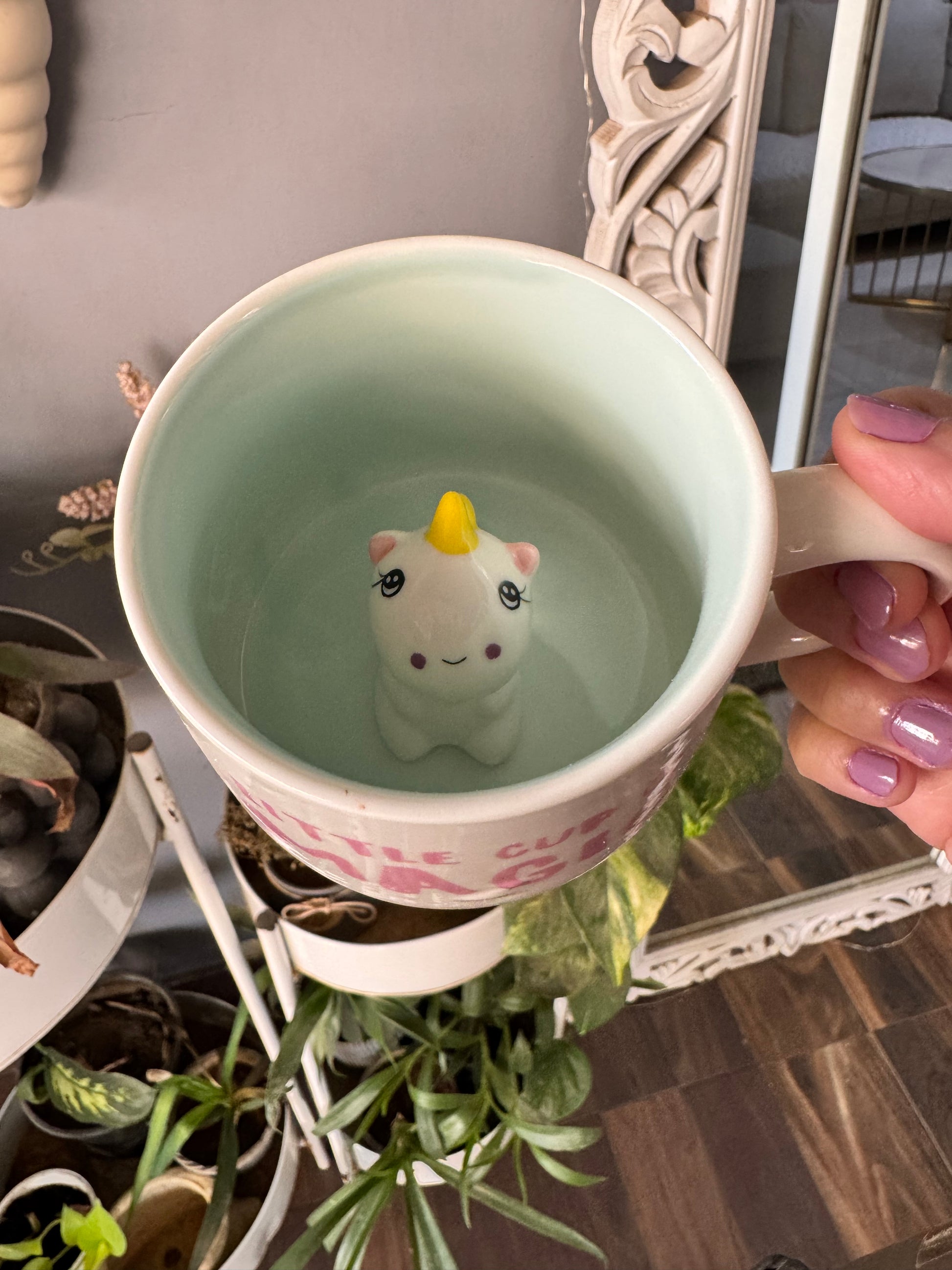 Experience the magic of a Pinterest-inspired unicorn inside mug! Sip your favorite beverage and be reminded of the beauty and wonder that is within you. With its vibrant colors and whimsical design, this mug is a perfect addition to your daily routine. Let your inner unicorn shine! This unique piece is not only a feast for the eyes with its charming design, but also a functional and practical addition to your kitchen. Enjoy your favorite beverage in style and bring a touch of elegance to your daily routine. Its cute design offers a comfortable grip while sipping your favorite beverage. Crafted with delicate details, this mug is designed to elevate your tea or coffee experience.