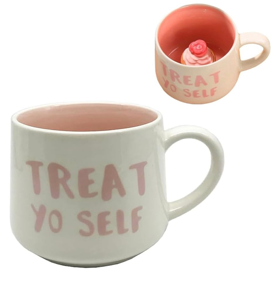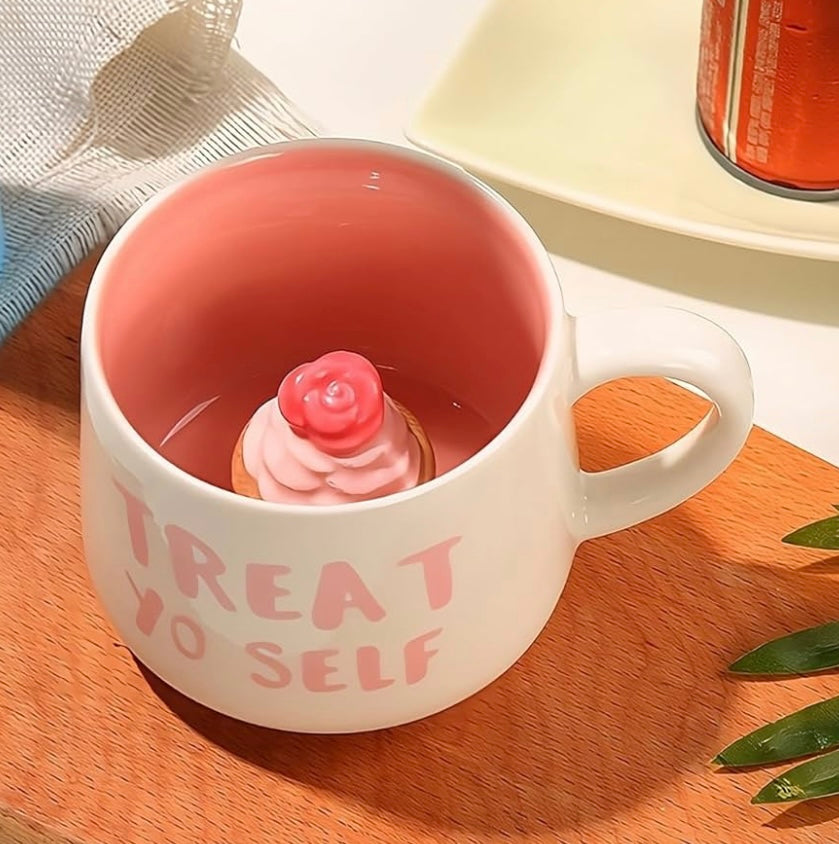 Indulge in the beauty of this Pinterest inspired cupcake inside mug. This unique piece is not only a feast for the eyes with its charming design, but also a functional and practical addition to your kitchen. Enjoy your favorite beverage in style and bring a touch of elegance to your daily routine. Its cute design offers a comfortable grip while sipping your favorite beverage. Crafted with delicate details, this mug is designed to elevate your tea or coffee experience.