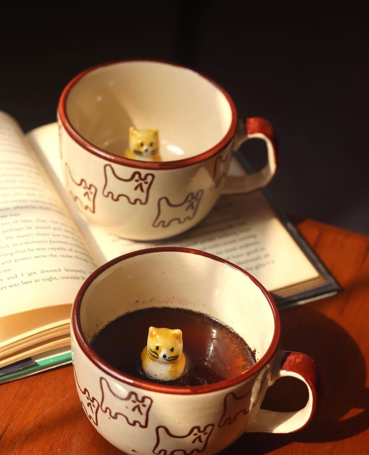 This playful mug with a surprise cat inside will make your morning coffee extra special. Pin your favorite ideas while sipping from this quirky animal mug. Perfect for animal lovers who like a touch of whimsy with their caffeine fix! Its cute design offers a comfortable grip while sipping your favorite beverage. Crafted with delicate details, this mug is designed to elevate your tea or coffee experience.