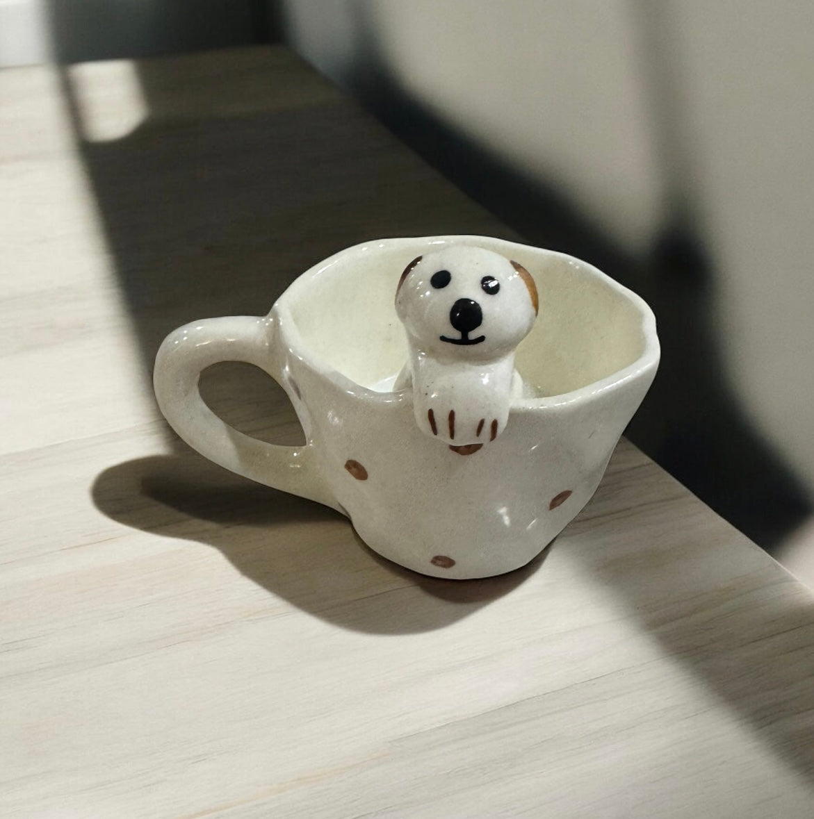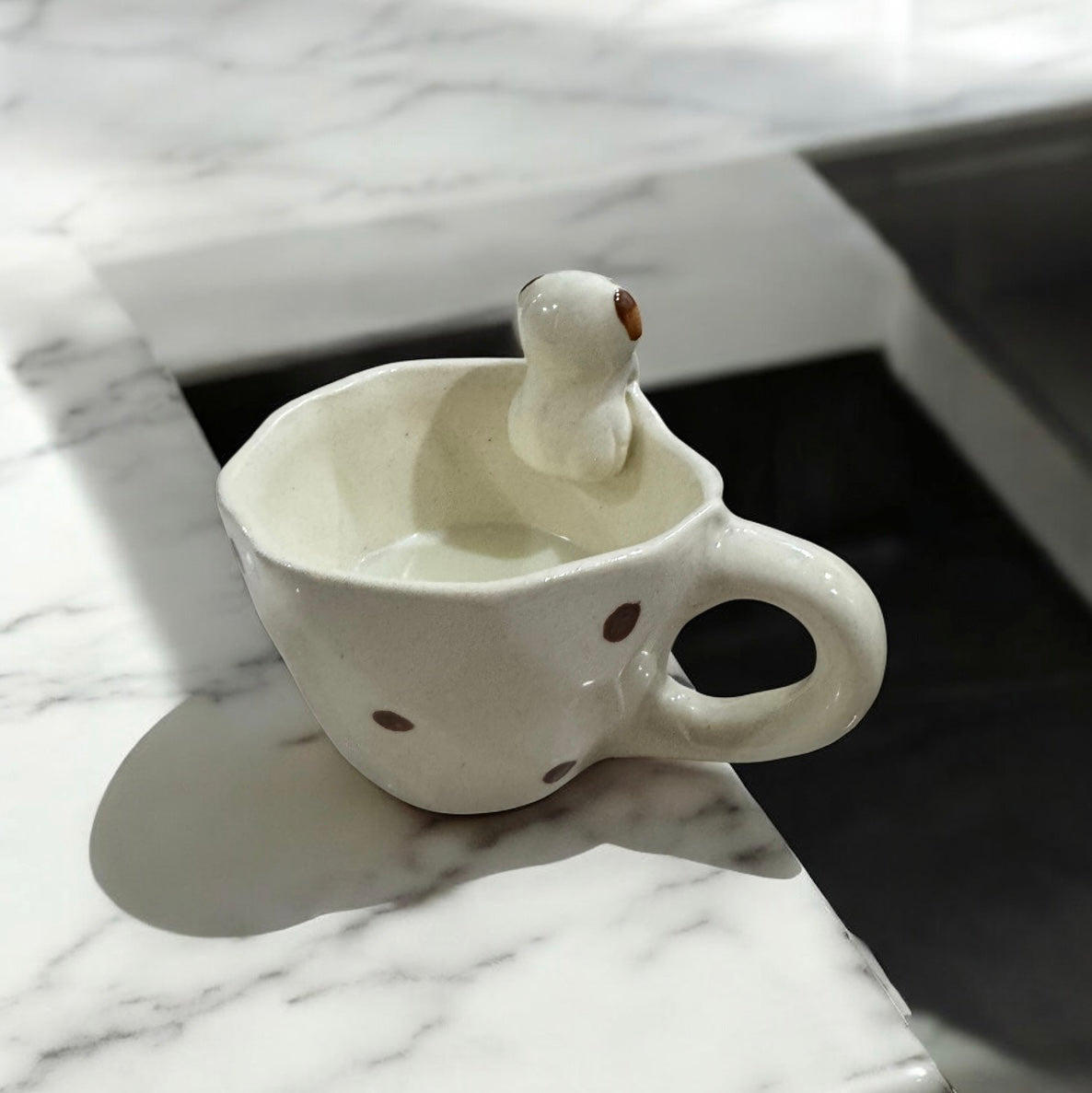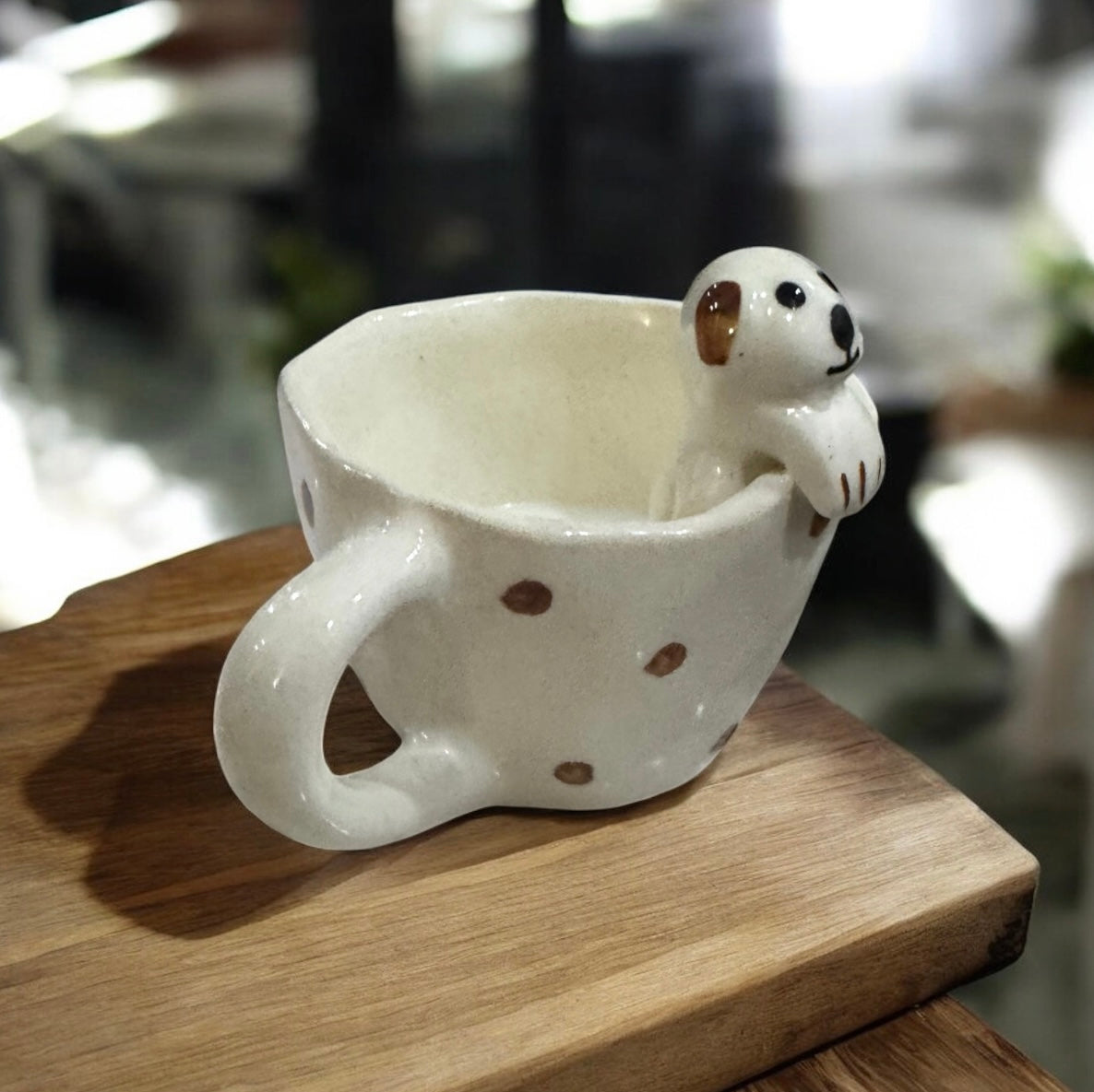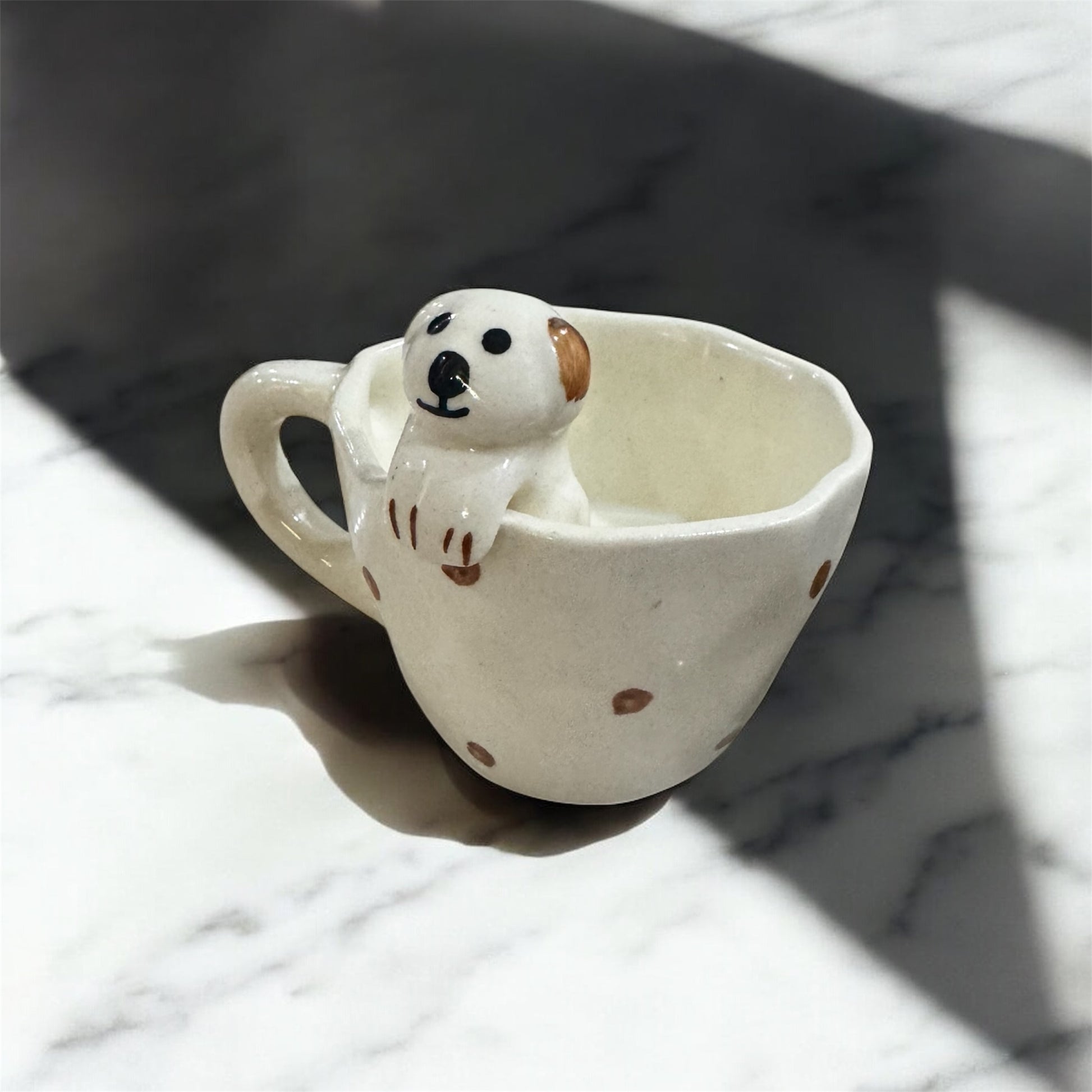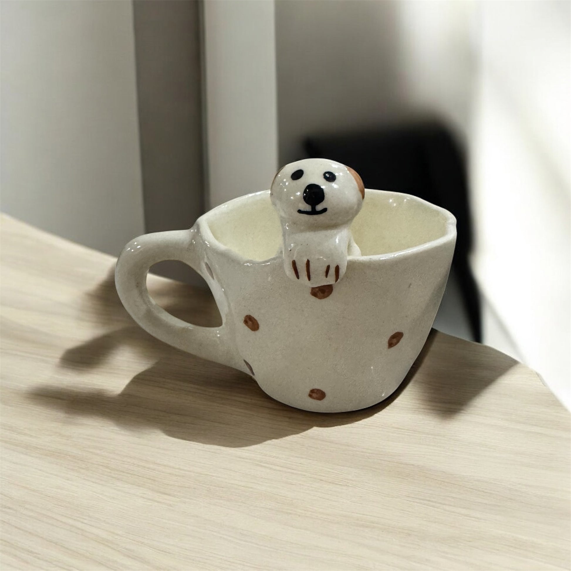This playful mug with a surprise doggy inside will make your morning coffee extra special. Pin your favorite ideas while sipping from this quirky animal mug. Perfect for animal lovers who like a touch of whimsy with their caffeine fix! Its cute design offers a comfortable grip while sipping your favorite beverage. Crafted with delicate details, this mug is designed to elevate your tea or coffee experience.