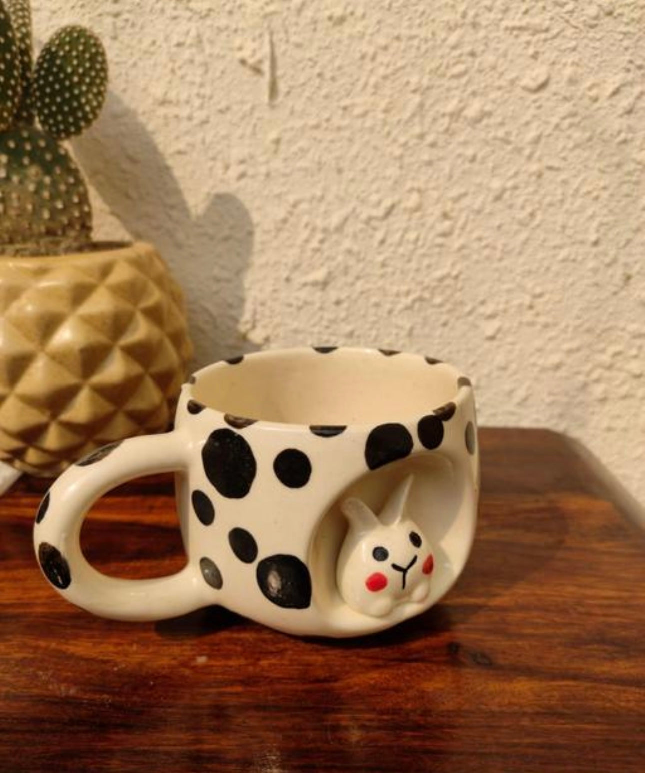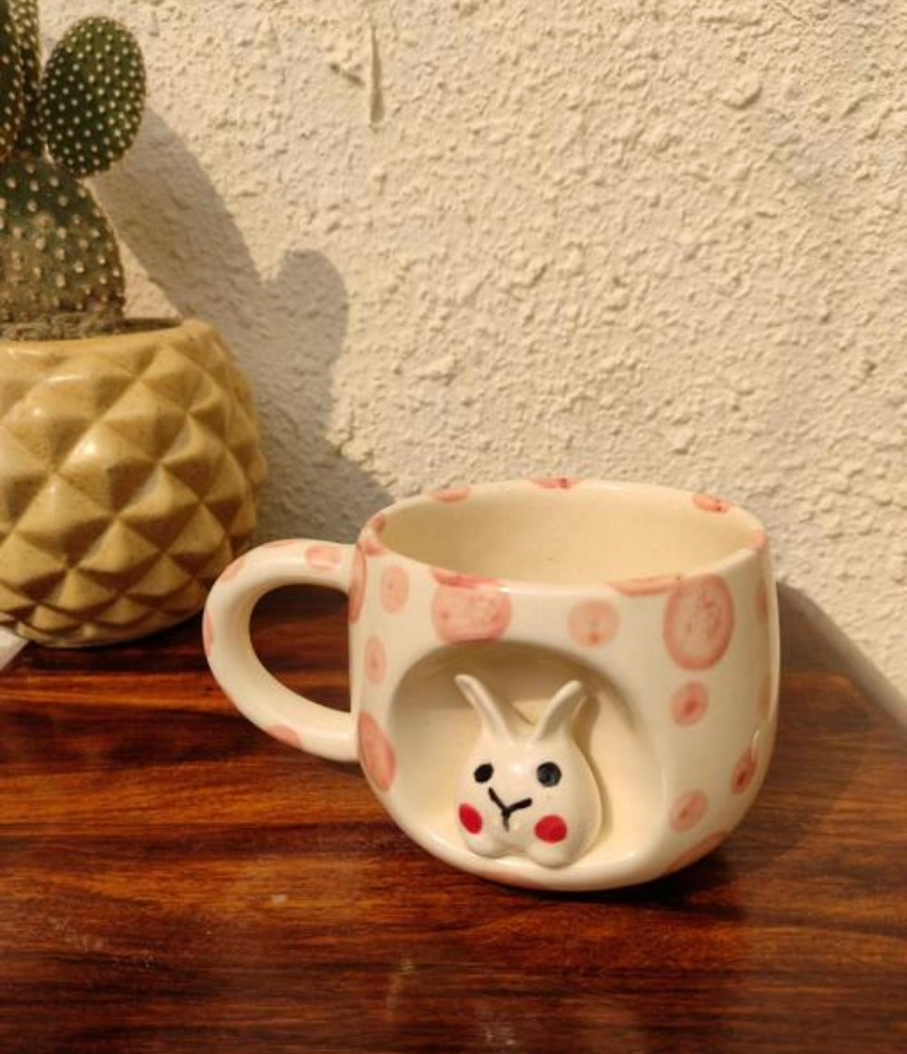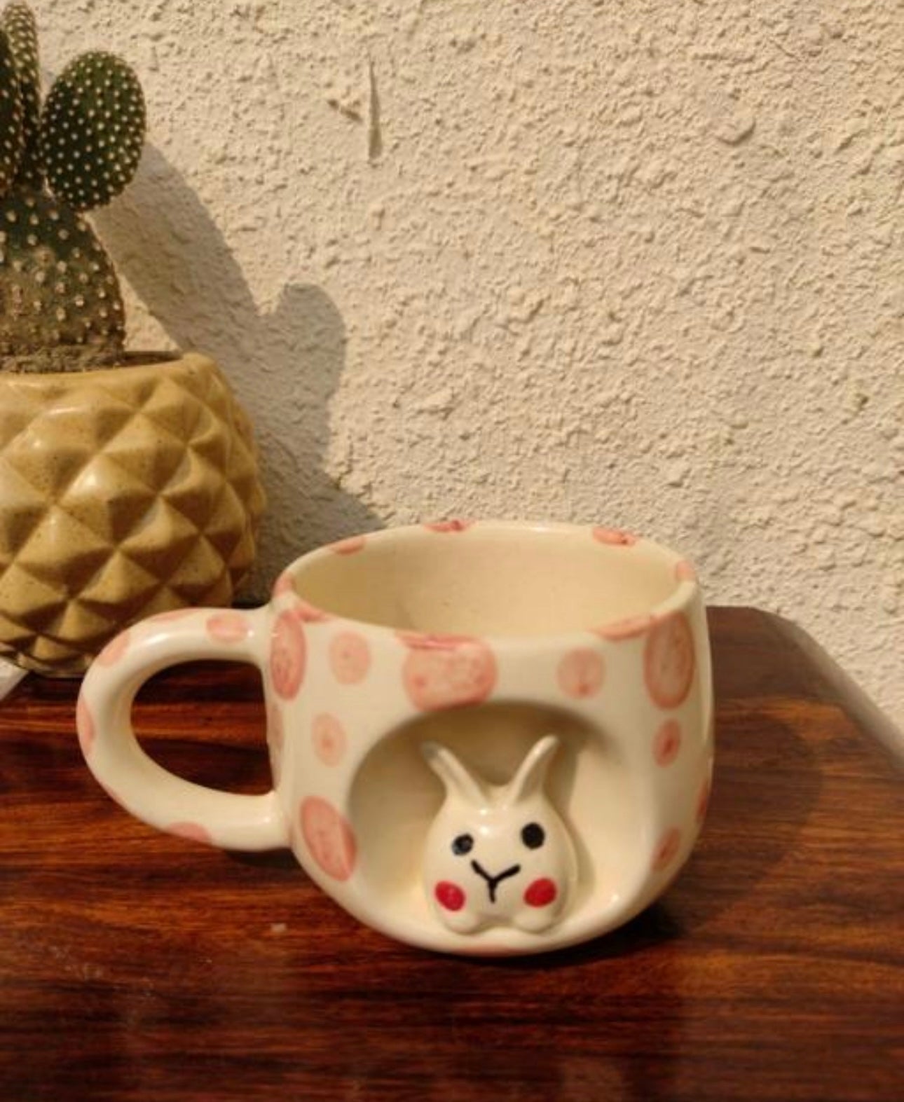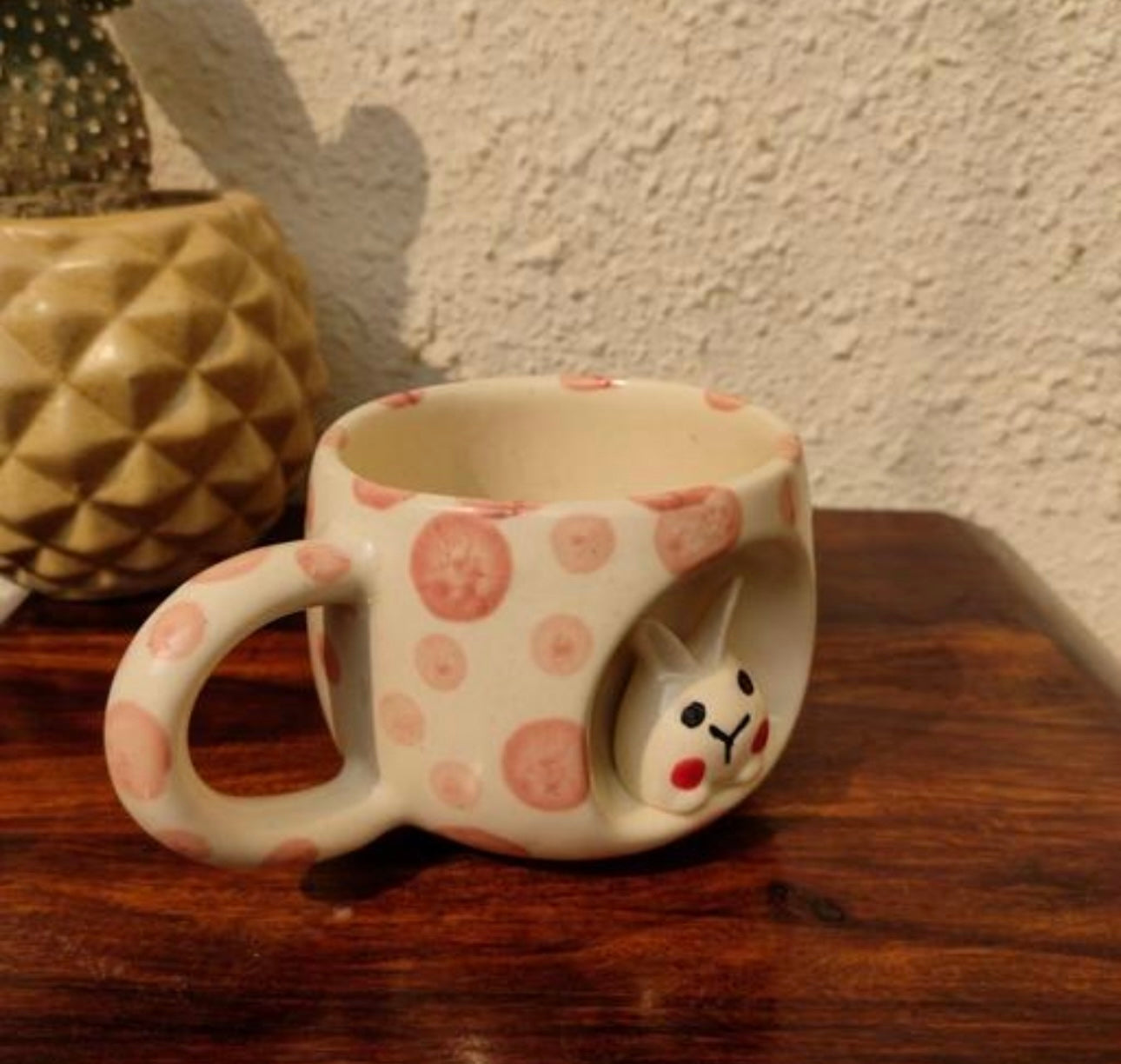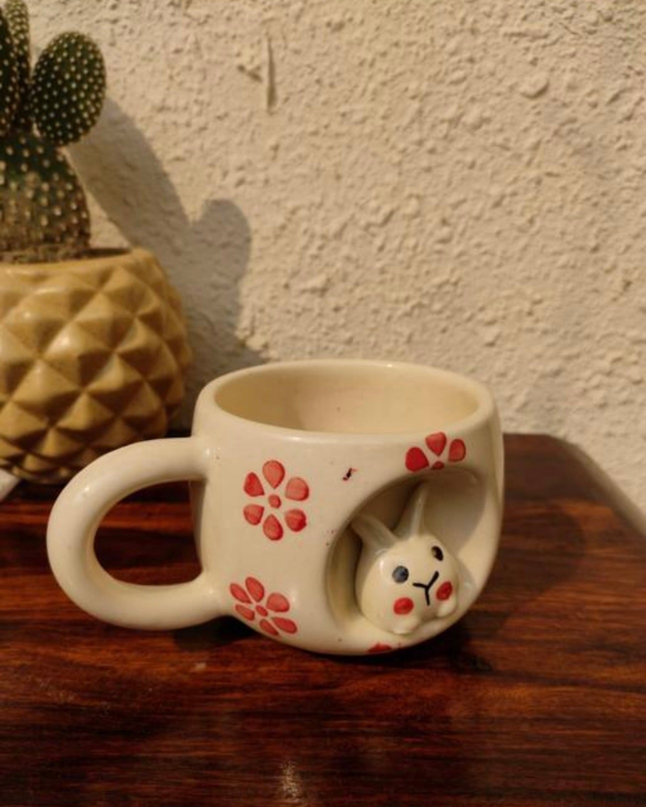 These playful mugs with a surprise rabbit inside will make your morning coffee extra special. Pin your favorite ideas while sipping from this quirky animal mug. Perfect for animal lovers who like a touch of whimsy with their caffeine fix! Its cute design offers a comfortable grip while sipping your favorite beverage. Crafted with delicate details, this mug is designed to elevate your tea or coffee experience.