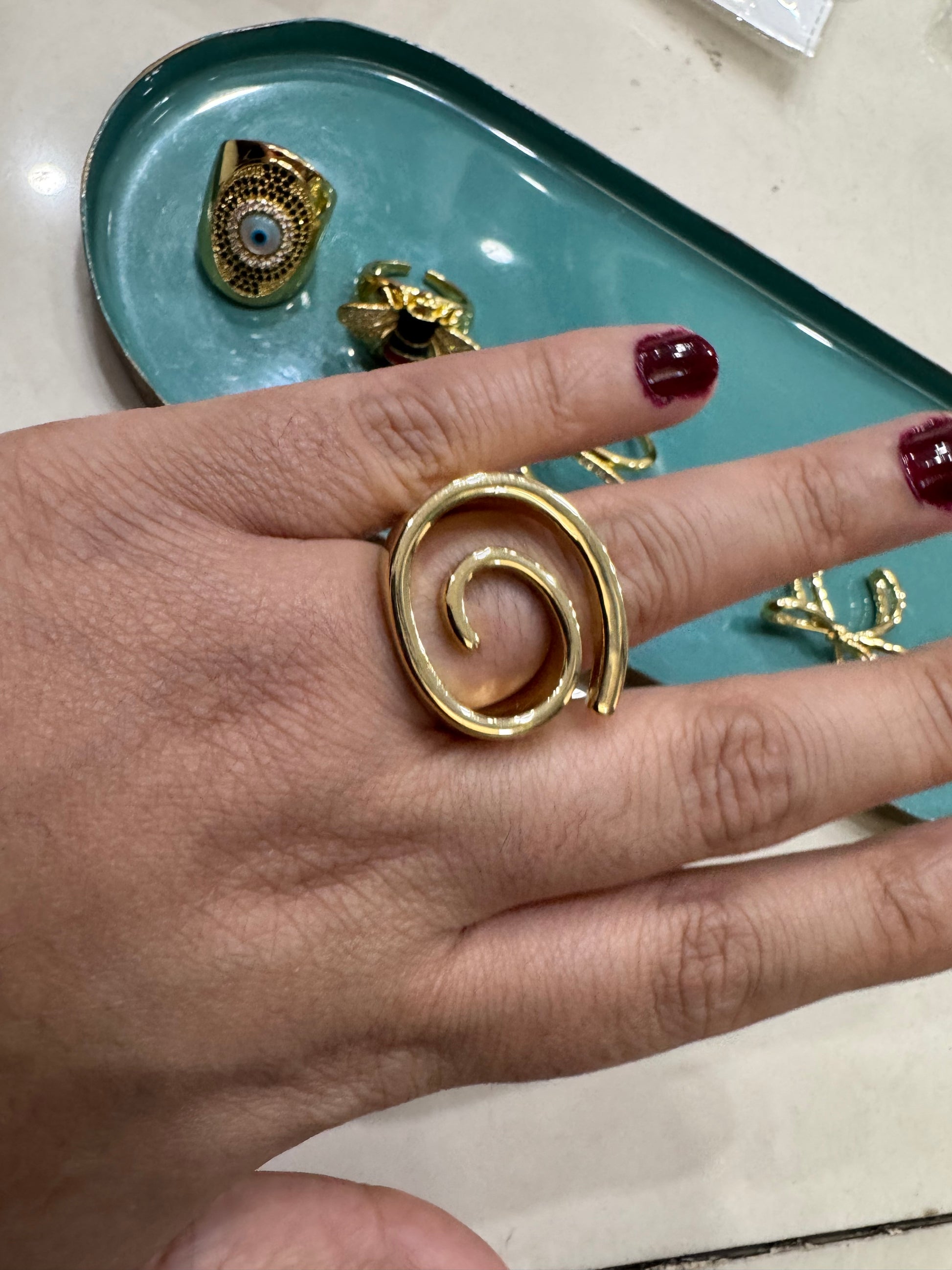 Elevate your style with our Gold Plated Statement Spiral Ring. Crafted with exquisite detail and a luxurious design, this ring effortlessly adds a touch of elegance to any outfit. The unique shape is a subtle statement of sophistication, making it the perfect addition to your jewelry collection. Crafted with high-quality gold plated metal, it's a timeless piece that will add a personal touch to any outfit."
