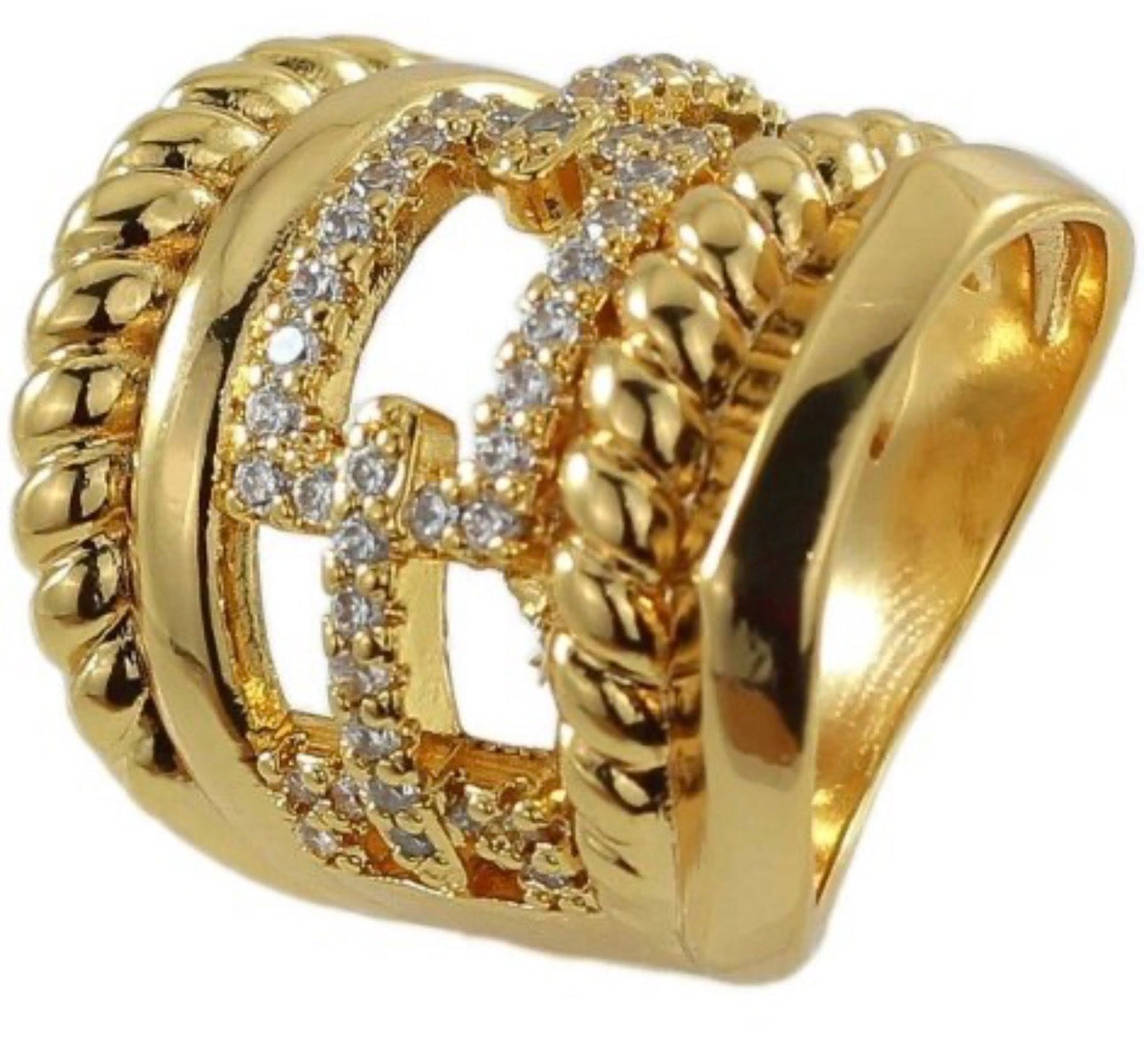 Elevate your style with our Chunky Gold Plated Layered Link Chain Ring. Crafted with exquisite detail and a luxurious design, this ring effortlessly adds a touch of elegance to any outfit. The unique shape is a subtle statement of sophistication, making it the perfect addition to your jewelry collection. Crafted with high-quality gold plated metal, it's a timeless piece that will add a personal touch to any outfit."