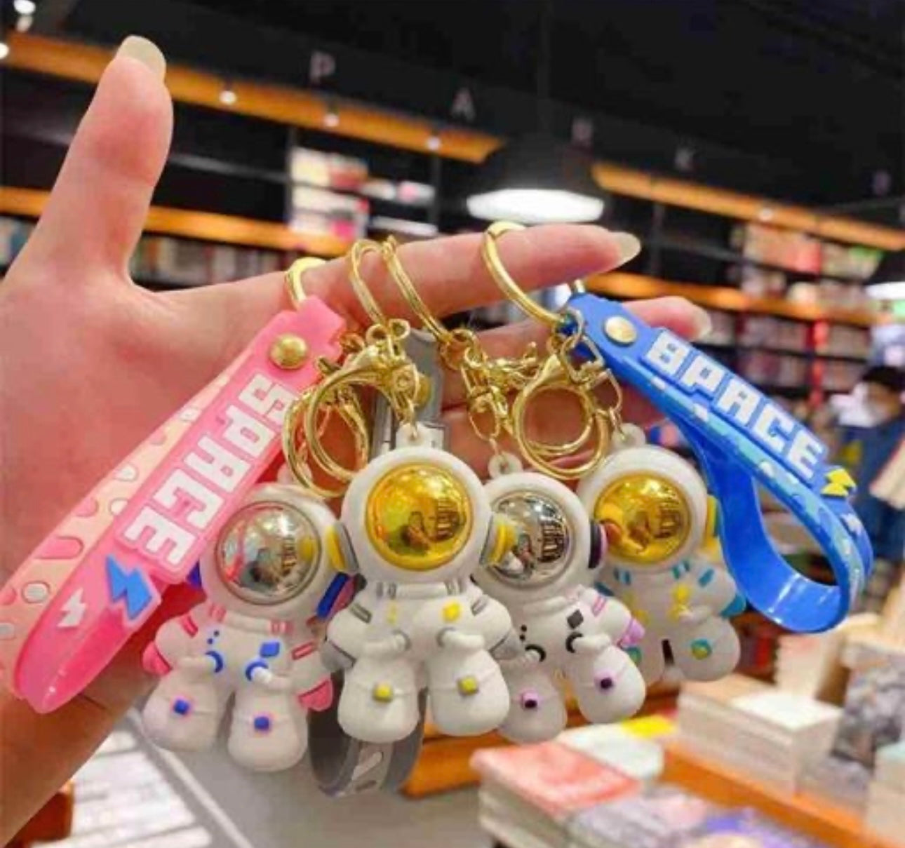 "Get ready to reach for the stars with our Astronaut Keychain! This quirky accessory is perfect for space lovers, adding a touch of fun to your keys. Take your love for space with you wherever you go with this unique keychain." Keep your keys safe and chic with this adorable accessory!