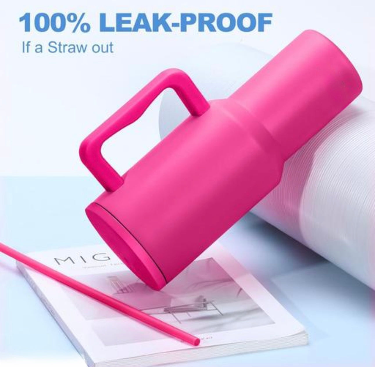 Name: 1200ML Stainless Steel Tumbler Hot and Cold with Handle and Lid 2 Straw, Double Insulated Cup 100% Leak Proof Mug Cupholder for Gym, Travelling (Fuchsia Pink)