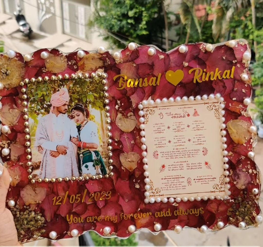 Varmala/Garland Preservation with Wedding Card in Customised Photo Frame