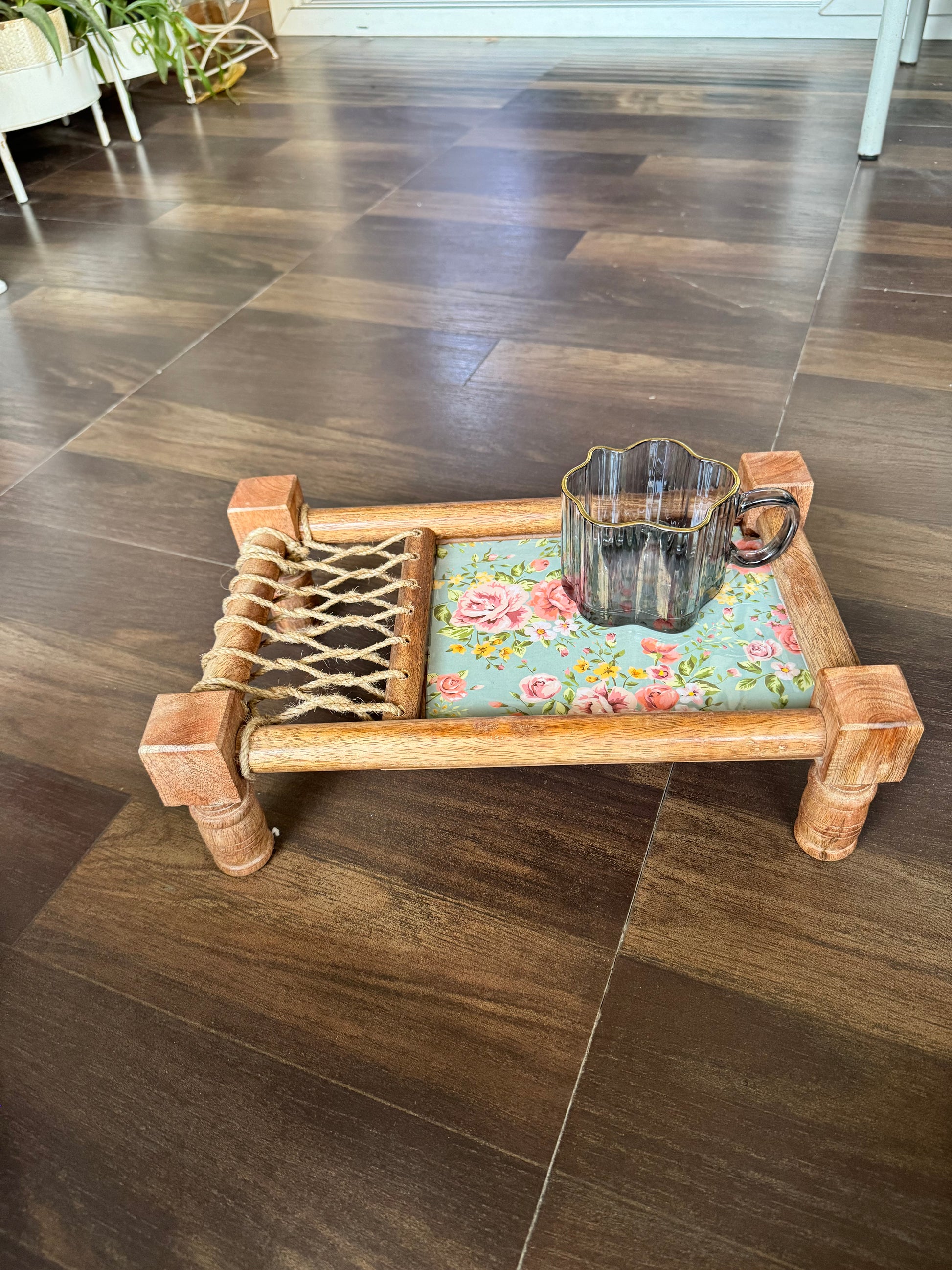 Exquisite Floral Print Wooden Khatiya/Cot Tray
