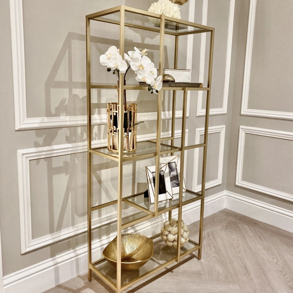 The Gold Metal Shelves are a sleek and stylish addition to any room. Made of high-quality stainless steel frame in a stunning gold finish, these shelves are not only a functional storage solution but also a beautiful showcase for your most valuable items. Elevate your home decor with these elegant showpieces featuring a versatile shelf design.