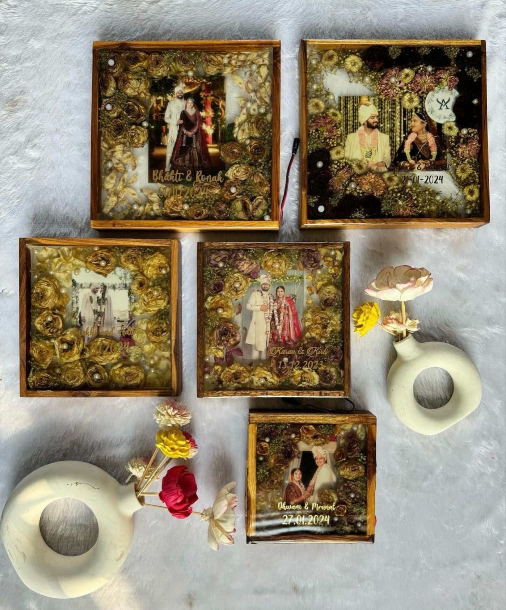 Get a stunning piece for your Varmala/Garland preservation that beautifully captures the essence of your special day. Featuring a couple picture at its heart, this exquisite keepsake celebrates the eternal bond of love.